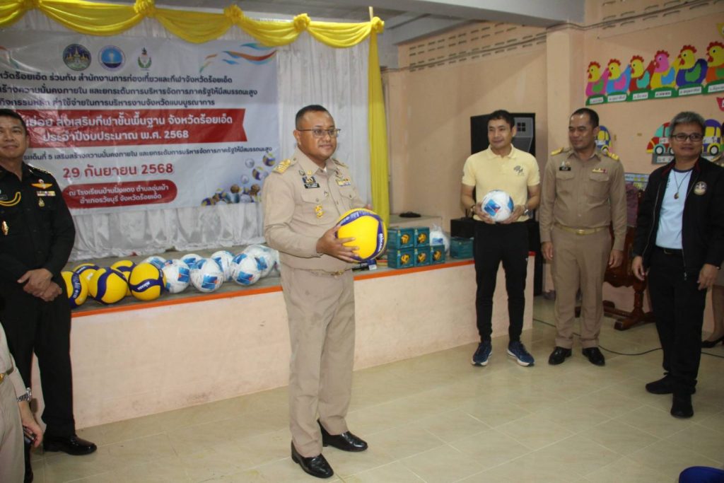 วันที่ 29 กันยายน 2568 เวลา 09.30 น. ณ ตำบลอุ่มเม้า อำเภอธวัชบุรี จังหวัดร้อยเอ็ด นายชัชวาลย์ เบญจสิริวงศ์ ผู้ว่าราชการจังหวัดร้อยเอ็ด เป็นประธานเปิดโครงการ ส่งเสริมกีฬาขั้นพื้นฐาน จังหวัดร้อยเอ็ด ประจำปีงบประมาณ พ.ศ. 2568 โดยมี นายเก่ง แกล้วกล้า ท่องเที่ยวและกีฬาจังหวัดร้อยเอ็ด พร้อมหัวหน้าส่วนราชการ นายอำเภอธวัชบุรี คณะครู และนักเรียน เข้าร่วม