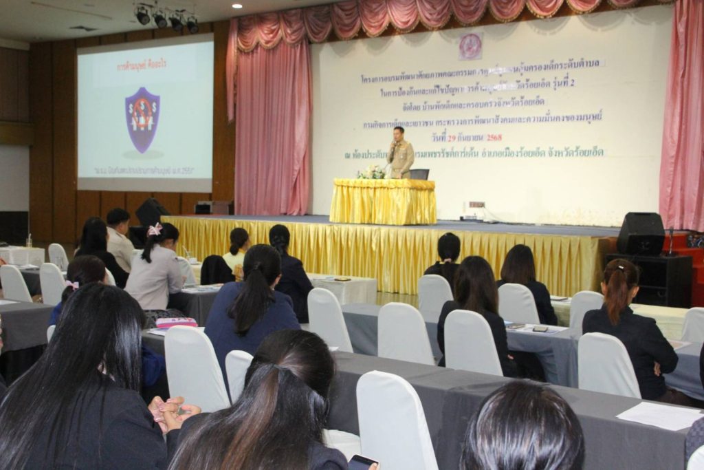 จังหวัดร้อยเอ็ดเดินหน้าสร้างภูมิคุ้มกันสังคม จัดอบรมพัฒนาศักยภาพคณะกรรมการศูนย์ชุมชนคุ้มครองเด็กระดับตำบล รุ่นที่ 2 เน้นป้องกันและแก้ไขปัญหาการค้ามนุษย์แบบบูรณาการ