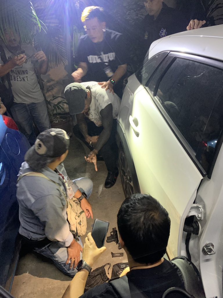 โดย นายเอมมานูเอลฯ ให้การว่า อาวุธปืนพกสั้นขนาดต่างๆ ที่พบไม่ใช่อาวุธปืนของตนเอง เป็นของเพื่อนคนไทยี่ได้มาจำนำไว้กับตน ส่วนยาเสพติดนั้นไม่ใช่ของตนเอง แต่เป็นของเพื่อนคนไทยอีกกลุ่มที่เข้ามาใช้ห้องของตนเป็นสถานที่มั่วสุมเสพยา และได้ลืมนำกลับไปด้วย ชุดจับกุมจึงได้พาตัวนายเอมมานูเอลฯ ไปตรวจปัสสาวะหาสารเสพติดโดยละเอียดที่โรงพยาบาลผลการตรวจสอบพบว่าผลเป็นบวก(Positive) พบสารเมทแอมเฟตามีนในปัสสาวะของผู้ถูกจับ ซึ่งผู้ถูกจับยอมรับว่าตนเคยเสพยาไอซ์จริง แต่ไม่ได้เสพมา 1 วันแล้ว เจ้าหน้าที่จึงได้แจ้งข้อกล่าวหาแก่ผู้ถูกจับว่า “เป็นคนต่างด้าวอยู่ในราชอาณาจักรโดยการอนุญาตสิ้นสุด , มีอาวุธปืนและเครื่องกระสุนไว้ในความครอบครองโดยไม่ได้รับอนุญาต , มียาเสพติดให้โทษประเภท ๑ ไว้ในความครอบครองโดยผิดกฎหมาย และเสพยาเสพติดให้โทษประเภท ๑ (เมทแอมเฟตามีนหรือยาไอซ์)” และเจ้าหน้าที่ได้แจ้งสิทธิ์ของผู้ถูกจับให้ทราบแล้ว โดย ผู้ถูกจับสามารถรับฟังภาษาไทยได้เป็นอย่างดี ควบคุมตัวส่ง พนักงานสอบสวนดำเนินคดีตามกฎหมายต่อไป