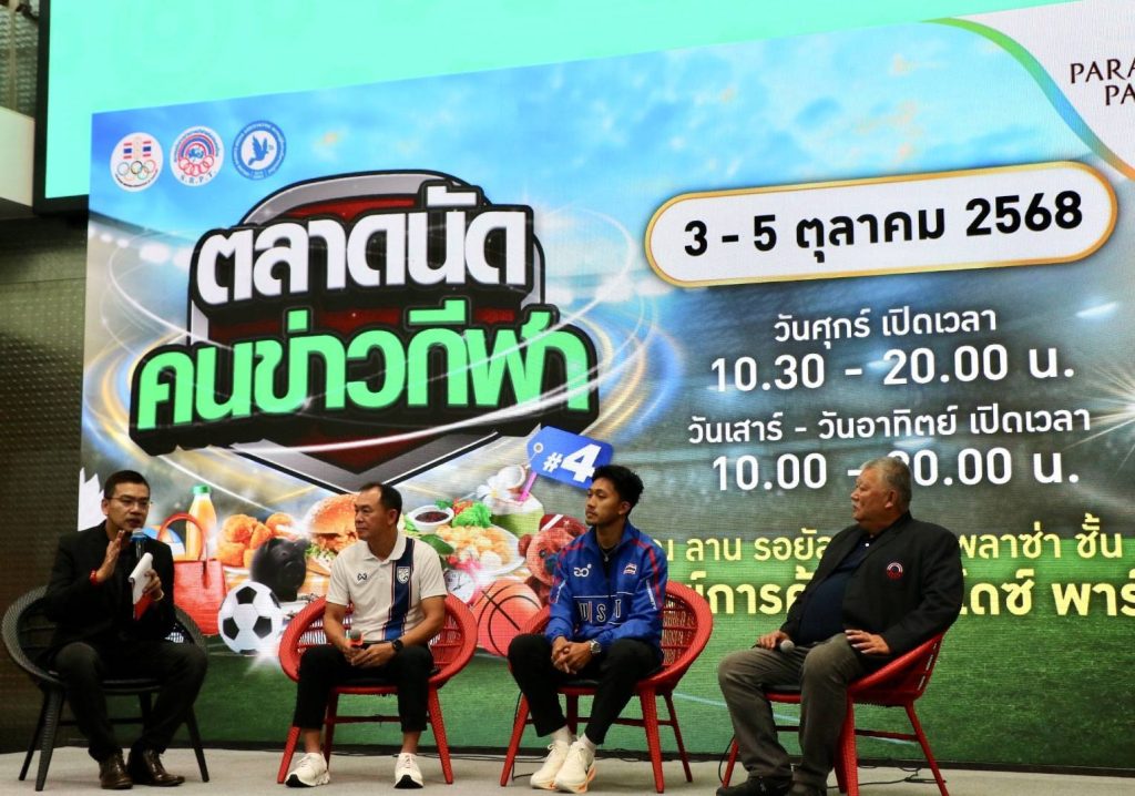 เรียกว่างานนี้ไม่ใช่แค่มาช้อป มาชิม แต่งานนี้ยังได้ใกล้ชิดนักข่าวกีฬาตัวจริงเสียงจริง และนักกีฬาทีมชาติไทยที่หมุนเวียนสลับกันมาร่วมงาน ใครเป็นแฟนใคร เตรียมมือถือไว้เซลฟี่กันได้เลย! แล้วพบกันในงาน “ตลาดนัดคนข่าวกีฬา ปีที่ 4” ระหว่างวันศุกร์ที่ 3 – วันอาทิตย์ที่ 5 ตุลาคม 2568 เวลา 10.00 น. – 20.00 ณ ลานรอยัล พาร์ค พลาซ่า ชั้น 1 ศูนย์การค้าพาราไดซ์ พาร์ค