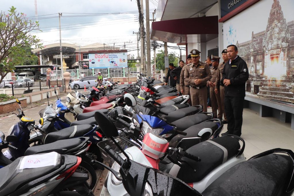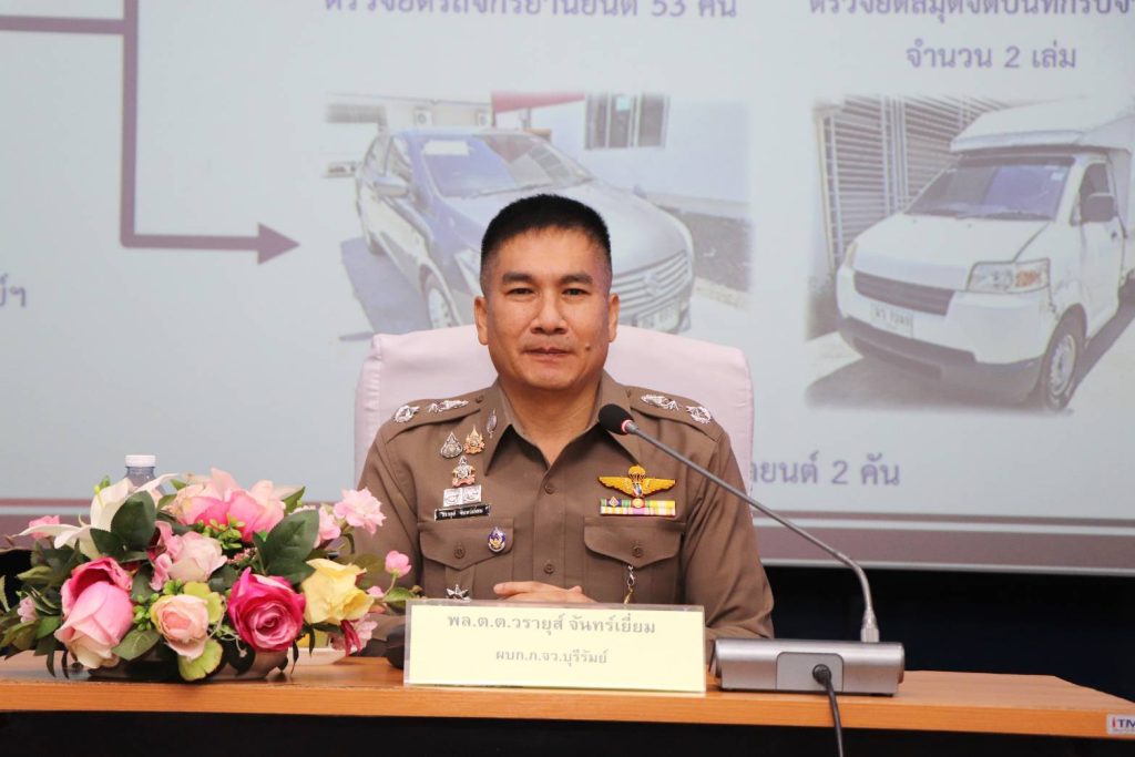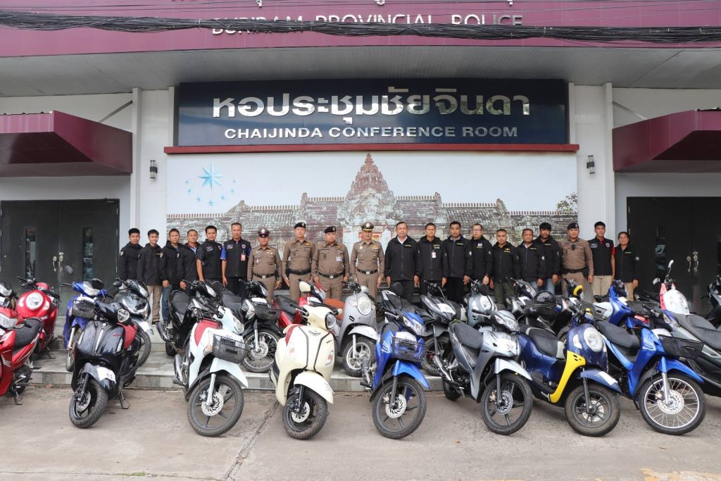 นำรถจักรยานยนต์จำนวน 53 คัน รถยนต์ 2 คัน สมุดบันทึกการรับจำนำ 2 เล่ม และเอกสารรับจำนำรถจำนวน 121 ชุด มาแถลงได้แถลงผลการจับกุมแก๊งรับจำนำรถในพื้นที่ จ.บุรีรัมย์ เนื่องจากได้รับการร้องเรียนจากบริษัทไฟแนนซ์ที่ให้เช่าซื้อรถจักรยานยนต์ ว่าลูกค้าเป็นจำนวนมาก ที่มาซื้อรถมีพฤติการณ์ที่ตั้งใจมาออกรถแล้วเอาไปจำนำกับคนรับจำนำ
