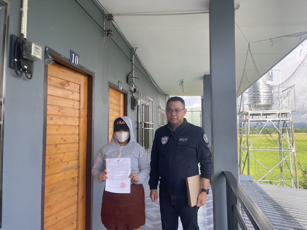 สั่งการให้ พล.ต.ต.กฤตัชญ์ บำรุงรัตนยศ ผบก.สอท.4 พ.ต.อ.ทิวา โสภาเจริญ รอง ผบก.สอท.2 พ.ต.อ.นรวัตน์ คำภิโล รอง ผบก.สอท.4 พ.ต.ท.ศิริพล จรรยา สว.กก.4 บก.สอท.2 พ.ต.ท.ชัยภัทร เชื้อสาย สว.กก.4 บก.สอท.2 พ.ต.ท.ชยกฤต จันหา สว.กก.1 บก.สอท.2 พ.ต.ท.วัธนดิศ ธนกุลนันท์ สว.กชช.ทว. ปฎิบัติหน้าที่ ศปอส.ตร. นำกำลังพร้อมหมายค้นศาลจังหวัดเชียงราย ที่ ค 318/2568 ค้นห้องเช่าภายในบ้านเลขที่ 271 ม.3 ต.ป่าซาง อ.แม่จัน จ.เชียงราย เข้าจับกุมน.ส.กมลภัทร์ หัตถะผะสุ อายุ 24 ปี ชาว จ.เชียงราย พร้อมตรวจยึด โน๊ตบุ๊ค 1 เครื่องและโทรศัพท์มือถืออีก 1 เครื่อง