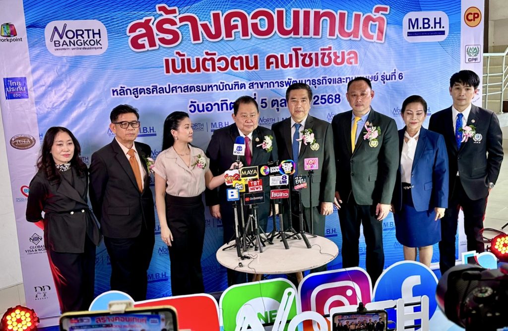เมื่อวันที่ 5 ตุลาคม 2568 ที่มหาวิทยาลัยนอร์ทกรุงเทพ วิทยาเขตรังสิต นายไชยา พรหมา รองประธานสภาผู้แทนราษฎร คนที่หนึ่ง เป็นประธานเปิดงานเสวนา “การสร้างคอนเทนต์เน้นตัวตนคนโซเชียล” จัดโดยนักศึกษาปริญญาโท สาขาการพัฒนาธุรกิจและทุนมนุษย์ คณะศิลปศาสตร์ มหาวิทยาลัยนอร์ทกรุงเทพ รุ่นที่ 6