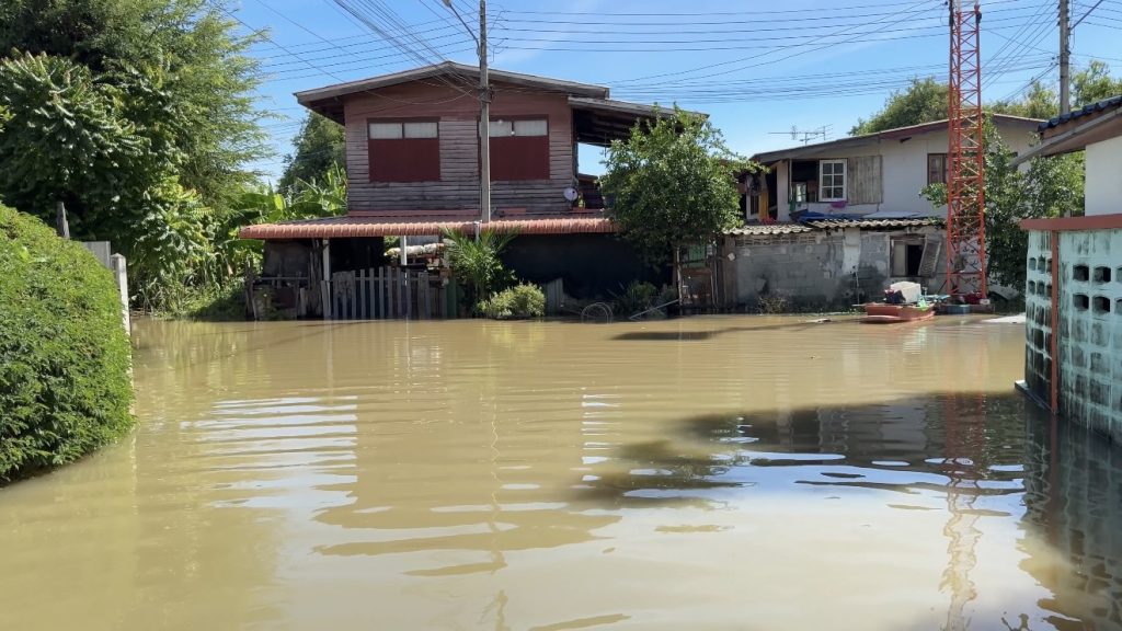 ชาวบ้านบางปะอิน เจอน้ำท่วมน้ำทะเลหนุนต้องคอยเก็บของ สัตว์เลี้ยงหนีน้ำ เลี้ยงไก่กันกลางบ้าน