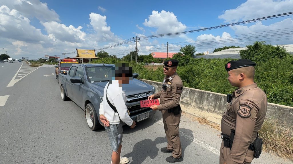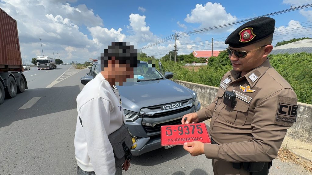 ตรวจสอบ มี นายยุทธศักดิ์ อายุ 29 ปี ชาว ตำบลคลองสอง อำเภอคลองหลวง จังหวัดปทุมธานี เป็นผู้ขับขี่ เจ้าหน้าที่ตำรวจขอดูใบอนุญาตขับขี่,สมุดคู่มือประจำรถ ( ป้ายแดง ) และแผ่นป้ายหมายเลขทะเบียน( ป้ายแดง ) ธ – 9375 กรุงเทพมหานคร ที่ติดมาด้านหน้ารถยนต์คันดังกล่าว