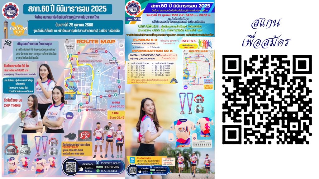 สมาคมหนังสือพิมพ์ส่วนภูมิภาคแห่งประเทศไทย เตรียมจัดกิจกรรม สภท.60ปี เดิน-วิ่งการกุศล มินิมาราธอน 2025 “วิ่งเพื่อการศึกษา” วันที่ 25 ตุลาคม 2568 ณ บึงพลาญชัย จังหวัดร้อยเอ็ด