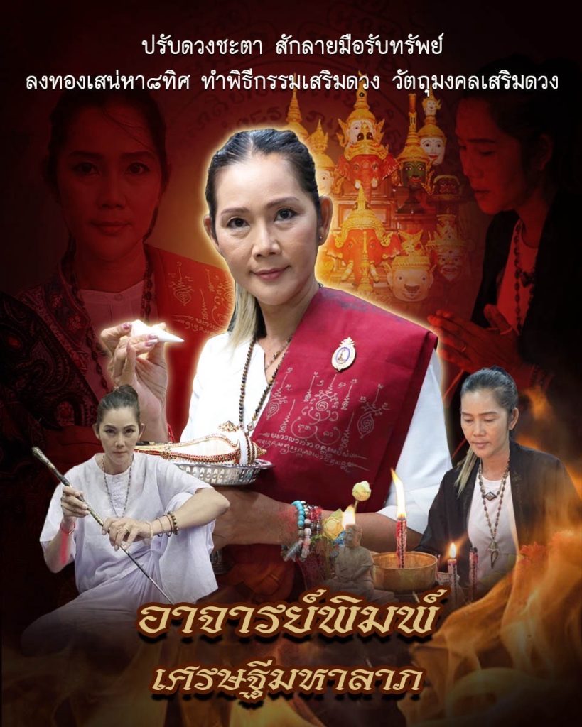 พบกับ อาจารย์พิมพ์ พิมพ์นิยม เจ้าแม่สายมูชื่อดังแห่งยุค ที่จะมาประกอบพิธี เจิมหน้า เจิมมือ ด้วย แกนมหาสังข์ ลง สีผึ้ง 111 ปี 101 พิธี พร้อมปลุกเสกโดย พระเกจิอาจารย์ชื่อดังจำนวนกว่า 11,000 รูป เพื่อเสริมสิริมงคลแก่ผู้เข้าร่วมงาน ให้ชีวิตปัง เฮง รวย สุข สมหวังในทุกด้าน