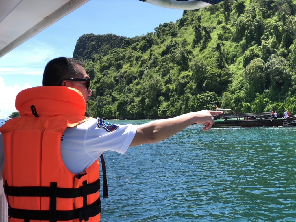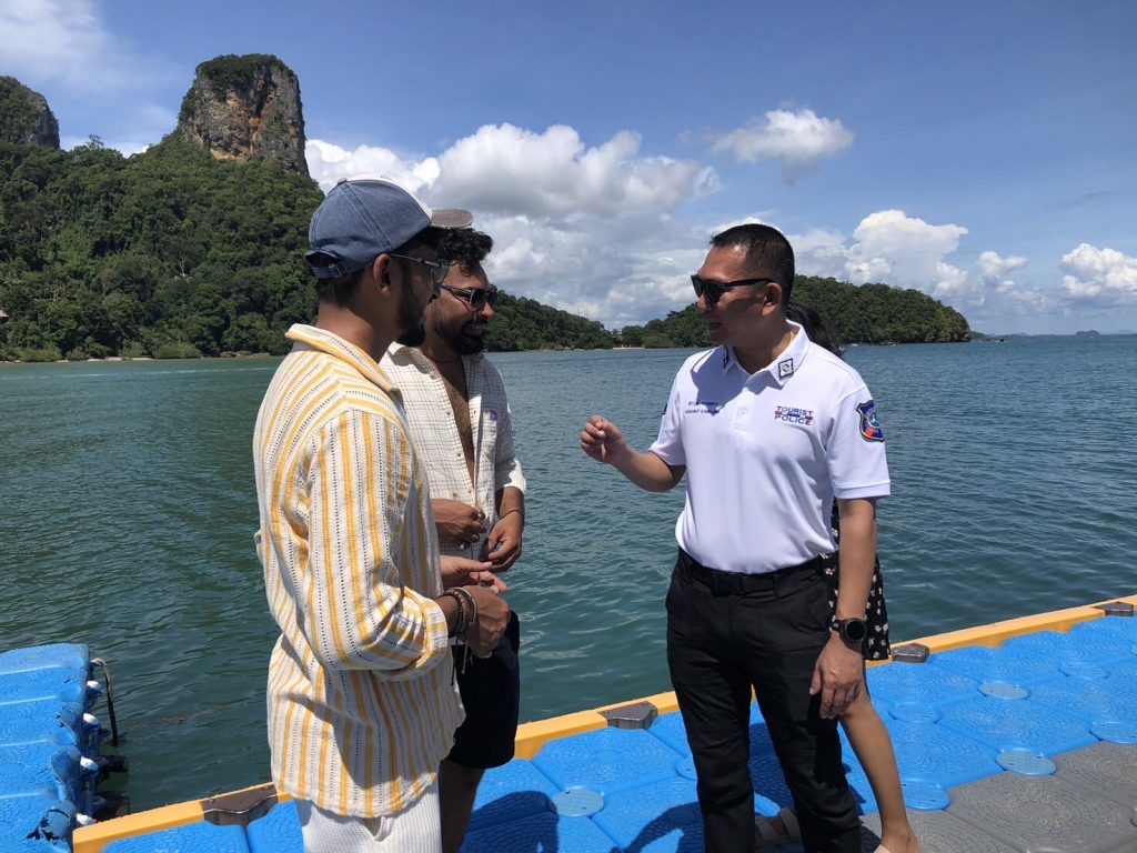 พ.ต.ท.สราวุฒิ กล่าวว่า ในช่วงเทศกาลวันหยุดยาว ส.ทท.3 กก.2 บก.ทท.3 (กระบี่) ได้ดำเนินการจัดกำลังเจ้าหน้าที่ตำรวจท่องเที่ยว และเจ้าหน้าที่ช่วยเหลือตำรวจท่องเที่ยว นำเรือตรวจการณ์ความเร็วสูง 323-02 ออกปฏิบัติหน้าที่ตรวจทางทะเล เพื่อดูแลความปลอดภัย และอำนวยความสะดวกกับนักท่องเที่ยวทั้งชาวไทยและชาวต่างชาติ ในพื้นที่สี่เกาะแหล่งท่องเที่ยวสำคัญที่มีนักท่องเที่ยวนิยมเข้ามาท่องเที่ยว ในแหล่งท่องเที่ยวทางทะเลซึ่งเป็นพื้นที่พักบนเกาะ และแหล่งดำน้ำดูปะการัง ทั้ง 4 แห่ง ได้แก่บริเวณ ทะเลแหวก,เกาะไก่,เกาะปอด่ะ,อ่าวไร่เลย์ ทั้งนี้เพื่อดูแลความปลอดภัย และประชาสัมพันธ์เน้นย้ำการใส่เสื้อชูชีพแก่นักท่องเที่ยว ในการนั่งเรือโดยสาร การเล่นน้ำ การดำน้ำ และเน้นย้ำเรื่องการทำประกันภัย