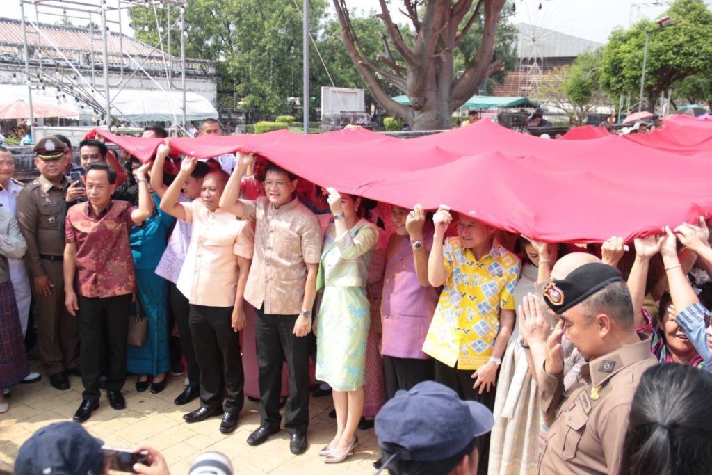 และผวจ.สมุทรปราการได้มอบผ้าแดงห่มองค์พระสมุทรเจดีย์ผืนเก่าที่ตัดมาเป็นชิ้นแจกจ่ายแก่ประชาชนที่มาร่วมงานเพื่อเป็นสิริมงคลแก่ตนเองและครอบครัว