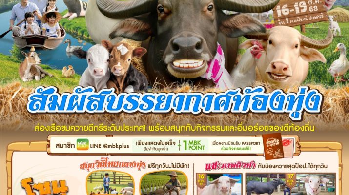 เดอะไนน์ เซ็นเตอร์ พระราม 9 ศูนย์การค้าในเครือ เอ็ม บี เค พร้อมต้อนรับเด็กๆ ช่วงปิดเทอมสุดหรรษา มาสัมผัสบรรยากาศฟาร์มกลางท้องทุ่ง ในงาน INTO THE FARM “ล่องเรือดู…ควาย” เนรมิตทุ่งนาผืนใหญ่ ตื่นตาตื่นใจกับกิจกรรมล่องเรือชมควายสวยงามดีกรีระดับประเทศ เรียนรู้การอนุรักษ์ควายไทย พร้อมสนุกกับกิจกรรมมากมาย ในโซนท้องทุ่งโซนบันเทิงทุ่ง อิ่มอร่อยกับผัดไทโบราณและขนมย้อนวัยเด็ก