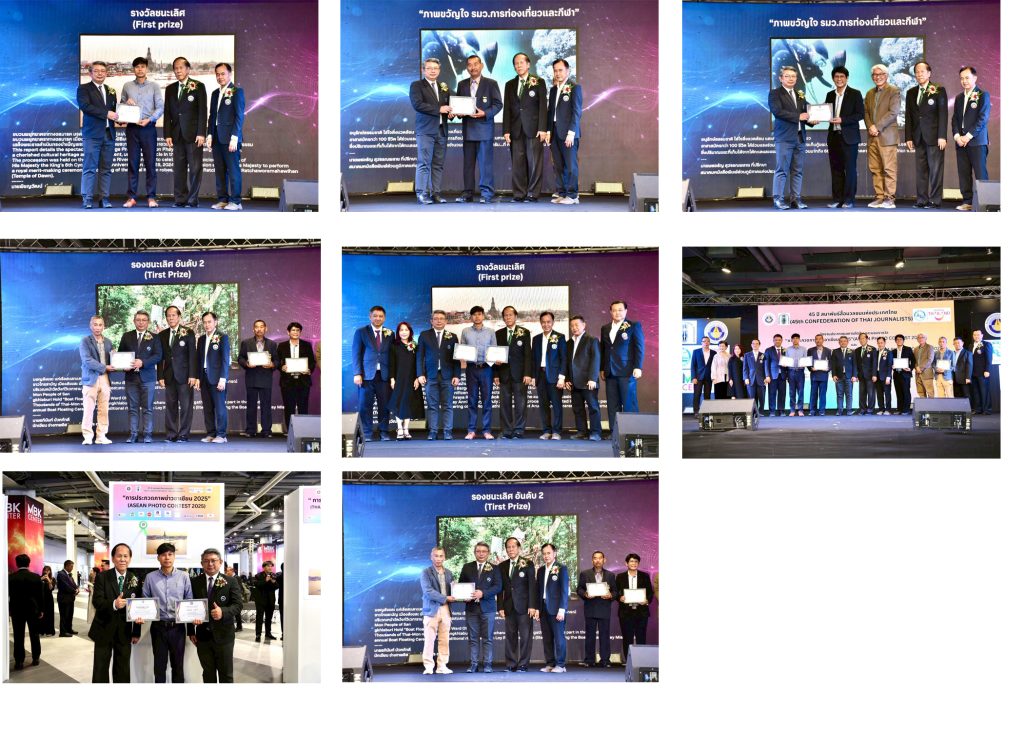 ผลการประกวดภาพข่าวอาเซียน 2025 ปราฏว่าภาพขบวนพยุหยาตราทางชลมารค ของ นายพิชญวัฒน์ ปรุงศักดิ์ จาก นสพ.เดลินิวส์ คว้ารางวัลชนะเลิศ ได้รับเกียรติบัตรและเงิน 1,000 เหรียญสหรัฐฯ รองชนะเลิศอันดับ 1 ภาพการแสดงโดรนเฉลิมพระเกียรติ ของนายพิชญวัฒน์ ปรุงศักดิ์ นสพ.เดลินิวส์ ได้รับเกียรติบัตรและเงิน 700 เหรียญสหรัฐฯ รองชนะเลิศอันดับ 2 ภาพช่างแกะสลักชิ้นงานพื้นเมือง ของนายเกรโกริโอ แดนเตส จากฟิลิปปินส์ ได้รับเกียรติบัตรและเงิน 500 เหรียญสหรัฐฯ นอกจากนี้มีภาพรางวัลชมเชย 2 รางวัล ได้แก่ภาพประเพณีในป่ากิล ลากูนา ของนายจอห์น ไรอัน เบลเดมาร์ จากฟิลิปปินส์ และภาพโคมไฟคริสต์มาส ของนายแอนดี้ ซาปาตา จากฟิลิปปินส์ ได้รับเกียรติบัตรและเงิน รางวัลละ 200 เหรียญสหรัฐฯ ส่วนผลการประกวดภาพท่องเที่ยวไทย 2025 รางวัลชนะเลิศ ได้แก่ ภาพการแสดงโดรนเฉลิมพระเกียรติ ของนายพิชญวัฒน์ ปรุงศักดิ์ นสพ.เดลินิวส์ ได้รับเกียรติบัตรและงิน 10,000 บาท รองชนะเลิศอันดับ 1 ภาพขบวนพยุหยาตราทางชลมารค ของ นายพิชญวัฒน์ ปรุงศักดิ์ จาก นสพ.ดลินิวส์ ได้รับเกียรติบัตรและเงิน 5,000 บาท รองชนะเลิศอันดับ 2 ภาพแห่เรือสะเดาะเคราะห์ของ นายอภินันท์ บัวหภักดี นักเขียน ช่างภาพอิสระ ประจำ อนุสาร อสท. ได้รับเกียรติบัตรและเงิน 3,000 บาท นอกจากนี้มีภาพรางวัลพิเศษ “ภาพขวัญใจ รมว.การท่องเที่ยวและกีฬา” เป็นภาพการเก็บขยะใต้ทะเล ของนายพรอรัญ สุวรรณพลาย จากเว็บไซต์ สภท. และรางวัล “ภาพขวัญใจ ผู้ว่าการ ททท.” เป็นภาพเที่ยววิถีไทย ของ นายซ้อน คงไสยภาคิน จาก นสพ.ไทยรัฐ ได้รับเกียรติบัตรและเงินรางวัลละ 5,000 บาท