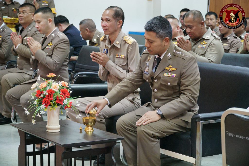 “ กอบโชค ผกก. บ้านโป่ง นำข้าราชการตำรวจในสังกัด ร่วมพิธี เจริญพระพุทธมนต์ ในวันตำรวจ ปี 68“