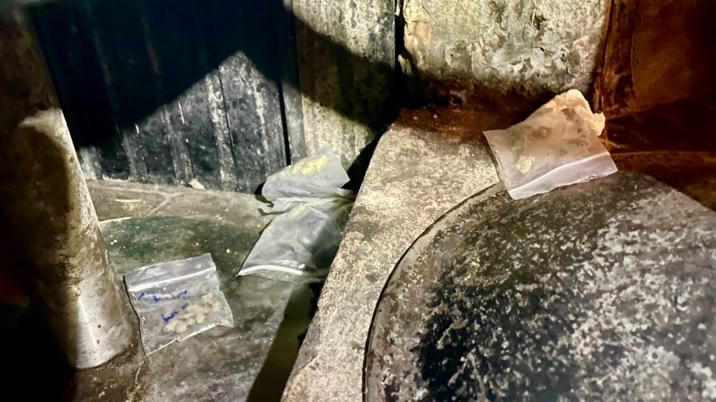 ภายในร้านพบกลุ่มนักเที่ยวไทย–ต่างชาติจำนวนมาก เจ้าหน้าที่ตรวจค้นทั่วพื้นที่ พบของกลางยาเสพติดทั้ง “โคเคน–ไอซ์–ลูกโป่งแก๊สหัวเราะ” กระจายตามโต๊ะและในห้องน้ำชาย รวมถึงถุงซิปล็อกใช้แล้วจำนวนมาก