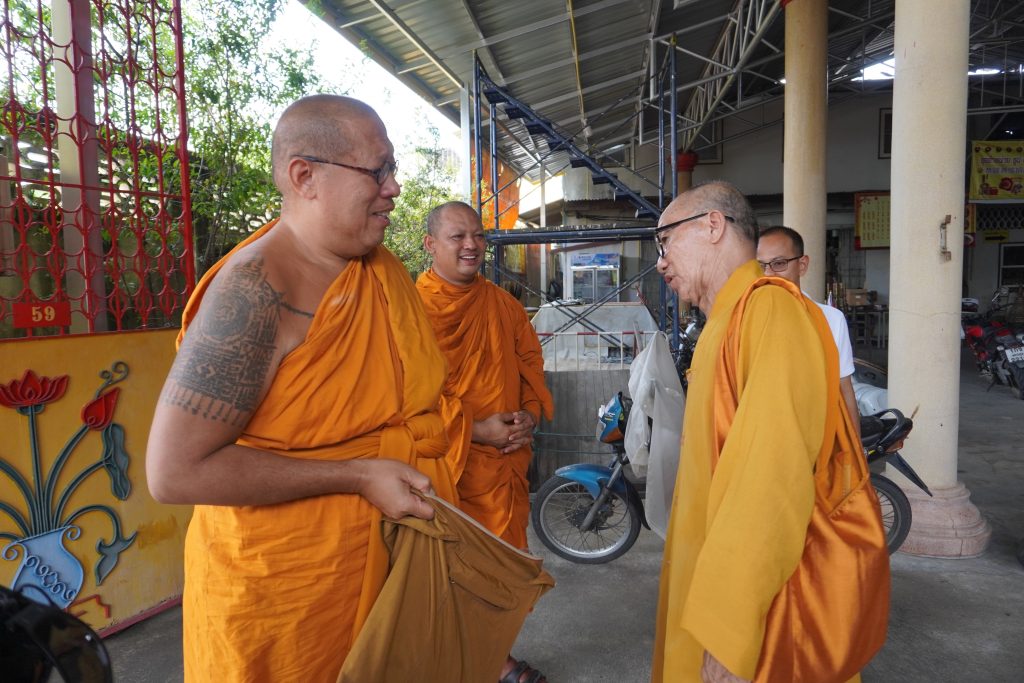 จากนั้นหลวงพี่น้ำฝน ได้ติดตามเข้ามาตรวจสอบ และเข้าสอบถามข้อมูลโดยมีสีหน้าเอื้อมระอาแต่ยังมีรอยยิ้ม ซึ่งสอบถามว่าเหตุใดจึงแต่งกายเป็นแบบพระจีนและสังกัดอยู่วัดใด ปรากฏว่านายเรืองชัย ได้ตอบเพียงสั้นสั้นว่าไม่ได้ไปบวชที่วัดไหนเป็นการภาวนาจิตด้วยตัวเองและแต่งกายเป็นพระจีน คล้ายอันนัมนิกาย ซึ่งหลวงพี่น้ำฝนบอกว่า ตอนนี้เท่ากับว่านายเรืองชัยไม่ใช่พระ จึงไม่ใช่อำนาจการตัดสินใจของอาตมา และขอให้เป็นหน้าที่ของเจ้าหน้าที่บ้านเมือง จึงได้ประสานไปยังพันตำรวจเอกอชิรวัตติ์ ถาวรเจริญวัด ผู้กำกับการสถานีตำรวจภูธรเมืองนครปฐม และนางพัทยา ทองเสภี ผู้อำนวยการสำนักงานพระพุทธศาสนาจังหวัดนครปฐม เพื่อให้ร่วมเข้าตรวจสอบ ขณะเดียวกันได้นายเรืองชัยได้พยายาม ใช้วลีเดิมคือขอโอกาสให้ผมอีกสักครั้ง ซึ่งหลวงพี่น้ำฝนได้แจ้งว่าท่านพูดคำนี้มาหลายครั้งแล้วต่อไปก็คือหน้าที่ของเจ้าหน้าที่บ้านเมืองที่จะเป็นผู้พิจารณา