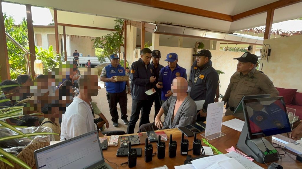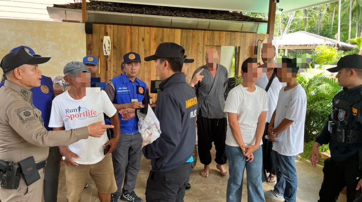 เมื่อวันที่ 17 ตุลาคมที่ผ่านมา คณะทำงานชุดเฉพาะกิจเพื่อป้องกันและปราบปรามการกระทำความผิดกรณีบุคคลต่างด้าวเข้ามาราชอาณาจักรเพื่อประกอบกิจการหรือดำเนินกิจกรรมต่าง ๆ ที่ผิดกฎหมาย ภายใต้การอำนวยการของนายธีรุตม์ ศุภวิบูลย์ผล ผู้ว่าราชการจังหวัดสุราษฎร์ธานี ได้สั่งการให้ นายสุริยา บุญพันธ์ นายอำเภอเกาะพะงัน และ นายไพสิฐ ทองเจิม ปลัดอำเภอหัวหน้ากลุ่มงานบริหารงานปกครอง จัดกำลังเจ้าหน้าที่ฝ่ายปกครอง พร้อมด้วยกำลังสมาชิกกองร้อยอาสารักษาดินแดนอำเภอเกาะพะงัน บูรณาการความร่วมมือกับ ตำรวจตรวจคนเข้าเมืองเกาะพะงัน กองบังคับการตำรวจตรวจคนเข้าเมือง 6 ตำรวจท่องเที่ยวเกาะพะงัน และสถานีตำรวจภูธรเกาะพะงัน ร่วมกันตรวจค้น ที่รีสอร์ท อาคาน่า เกาะพะงัน เลขที่ 71/21 หมู่ที่ 8 ตำบลเกาะพะงัน อำเภอเกาะพะงัน จว.สุราษฎร์ธานี และจับกุมผู้ต้องหา 5 ราย ประกอบด้วย