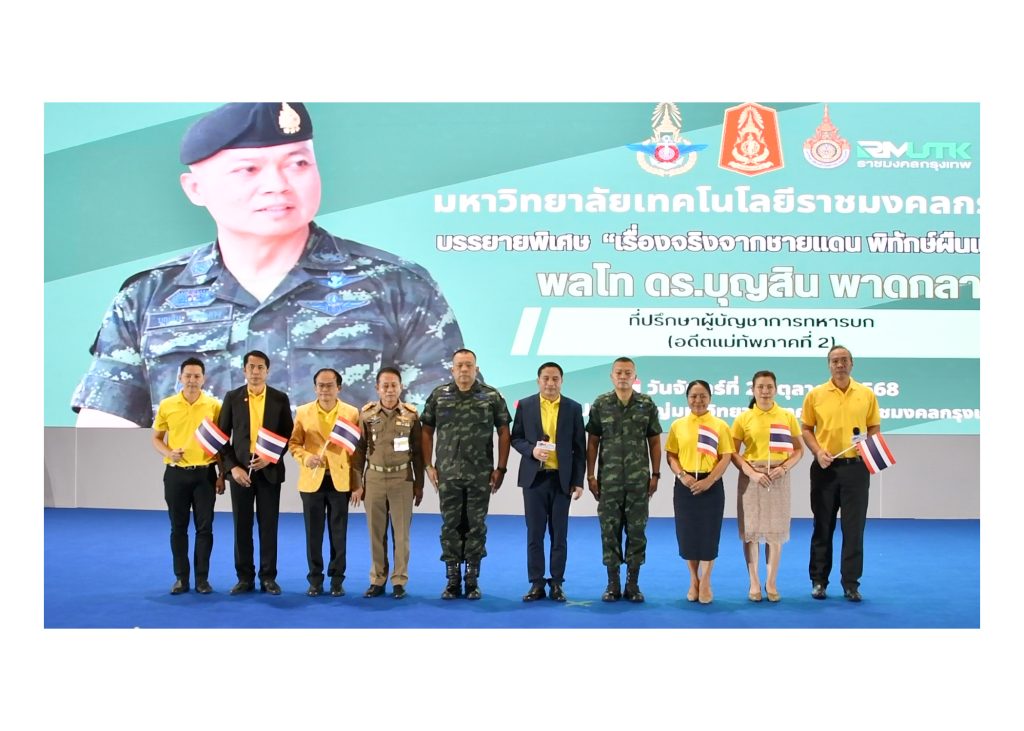 วันที่ 20 ตุลาคม 2568 มหาวิทยาลัยเทคโนโลยีราชมงคลกรุงเทพ จัดโครงการ “ราชมงคลกรุงเทพร่วมใจแสดงพลังแห่งความสามัคคี” และพิธีมอบทุนการศึกษา “โครงการทุนราชมงคลกรุงเทพเพื่อกองทัพไทย” ประจำปี 2569 โดยได้รับเกียรติจาก รองศาสตราจารย์ ดร. พิชัย จันทร์มณี อธิการบดี มหาวิทยาลัยเทคโนโลยีราชมงคลกรุงเทพ เป็นประธานในพิธีเปิด และ พลโท ดร. บุญสิน พาดกลาง ที่ปรึกษาผู้บัญชาการทหารบก (อดีตแม่ทัพภาคที่ 2) ให้เกียรติเป็นวิทยากรบรรยายพิเศษในหัวข้อ “เรื่องจริงจากชายแดน พิทักษ์ผืนแผ่นดินไทย” ณ หอประชุมใหญ่ มหาวิทยาลัยเทคโนโลยีราชมงคลกรุงเทพ
