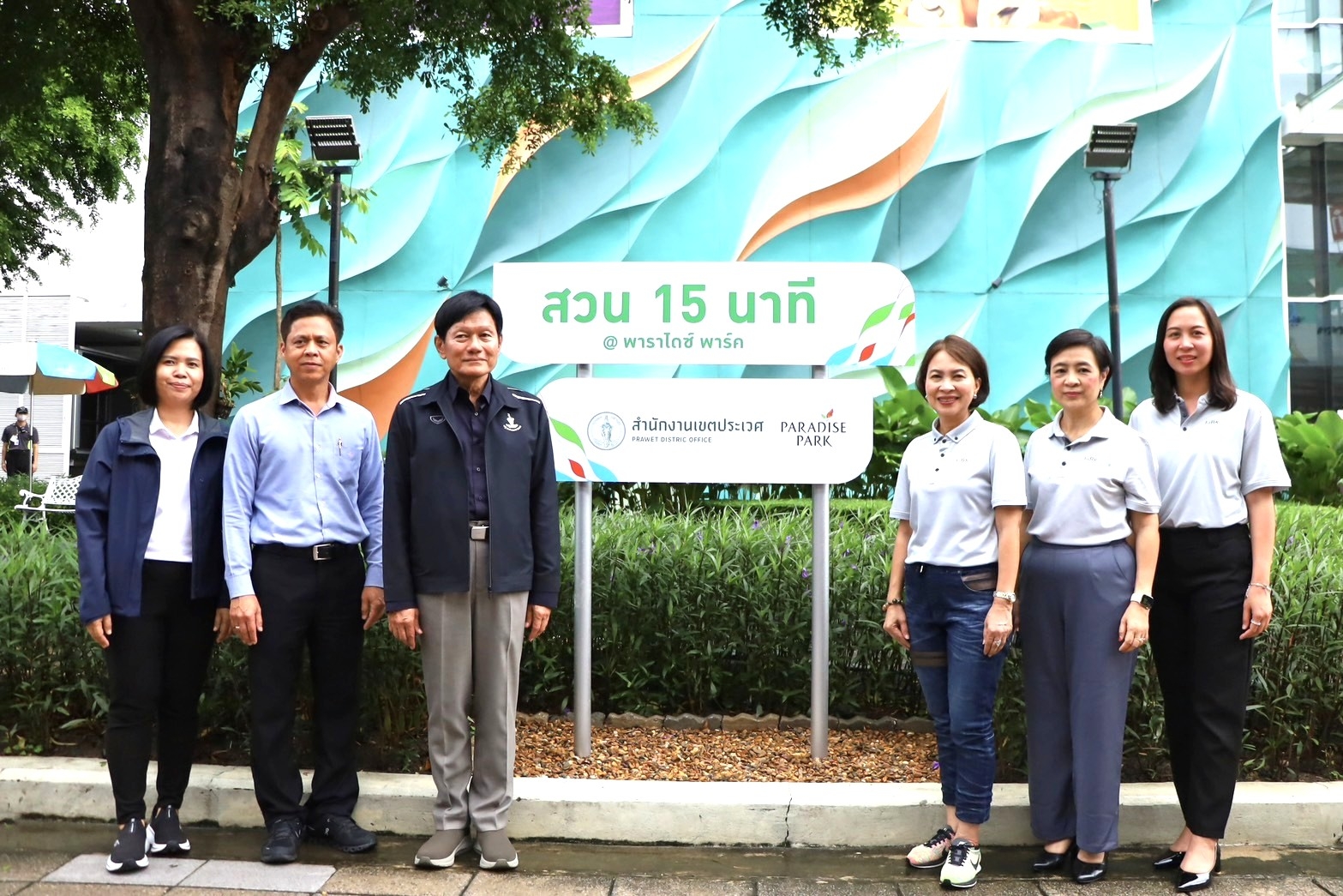 โดยเมื่อเร็ว ๆ นี้ พาราไดซ์ พาร์ค ได้ส่งมอบพื้นที่สีเขียว “สวน 15 นาที @Paradise Park” ให้แก่ กรุงเทพมหานคร โดยมี นายจักกพันธุ์ ผิวงาม รองผู้ว่าราชการกรุงเทพมหานคร ให้เกียรติรับมอบ พร้อมเปิดสวนอย่างเป็นทางการ ร่วมด้วย นางสาวจรูญรัตน์ สาลี กรรมการผู้จัดการ บริษัท พาราไดซ์ พาร์ค จำกัด และ นายเรืองศักดิ์ สายสิงห์ทอง ผู้อำนวยการเขตประเวศ ร่วมในพิธีเปิด พร้อมตอกย้ำเจตนารมย์ในการร่วมกันพัฒนาและดูแลพื้นที่สีเขียวให้เกิดประโยชน์สูงสุดให้แก่ประชาชนในพื้นที่เขตประเวศ