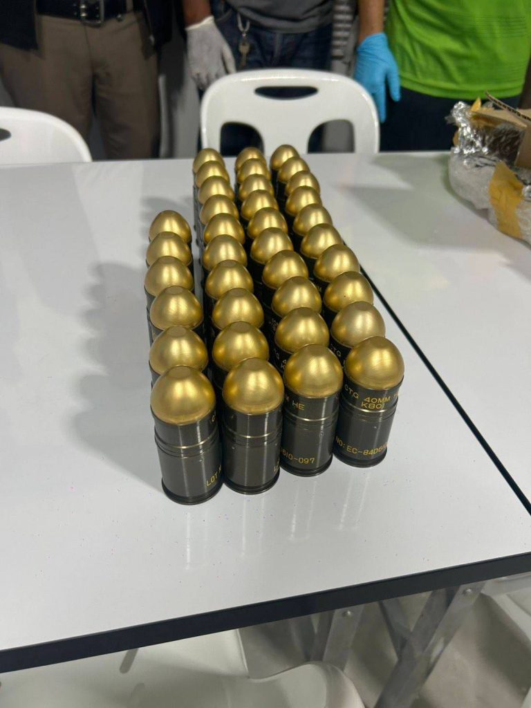 ว่า ทางเจ้าหน้าที่ตำรวจ สภ.บางกล่ำ อ.บางกล่ำ จ.สงขลา ตรวจพบและตรวจยึด ลูกกระสุนปืนขนาด 40 มิลลิเมตร ภายในพัสดุของบริษัทขนส่งสินค้าเอกชน ซึ่งได้รับแจ้งว่าพบขณะคัดแยกสิ่งของเพื่อจัดส่ง โดยมี ผู้ส่งจาก จ.นราธิวาส ไป อ.แม่สอด จ.ตาก ล่าสุดเจ้าหน้าที่สามารถควบคุมตัว นายกีซัม วุธางกูร ซึ่งให้การรับสารภาพว่า เป็นผู้จัดส่งลูกกระสุนดังกล่าว โดยได้เชิญตัวเข้าสู่กระบวนการซักถาม เพื่อขยายผลหาผู้ร่วมขบวนการเพิ่มเติม ทั้งนี้จากการให้การเบื้องต้น ได้ข้อมูล ดังนี้