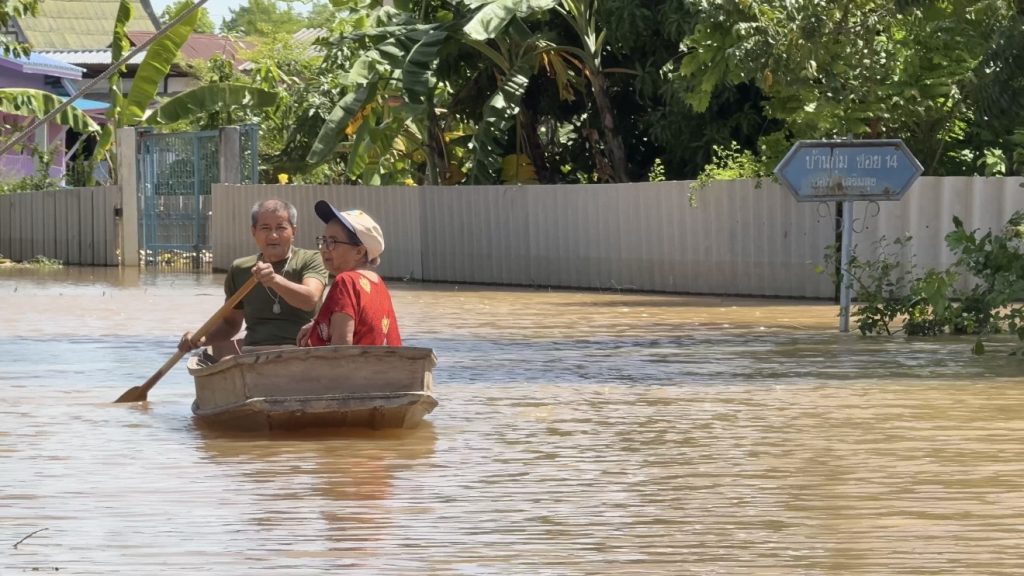 ก็ยังมีหน่วยงานที่เกี่ยวข้อง ท้องถิ่นมาดูแลแจกถุงยังชีพบ้าง เข้าออกลำบากดีว่ามีเรือถ้าไม่มีเรือแย่เลย เรือเดี๊ยวนี้ก็แพงจะซื้อใหม่หรือซื้อเพิ่มก็แพง ถึงหลักหมื่น อยากให้ช่วยผันน้ำไปทางอื่นบ้าง ช่วยๆกันไปบ้าง ท่วมเยอะก็ไม่เป็นไรแต่แบ่งๆกันไปบ้างจะได้หนักเป็นเบา ไม่ใช่มาที่เดียวแบบนี้มาอุดกันไว้หมดออกไปไหนไม่ได้ ก็ท่วมอยู่ตรงนี้มาที่เดียวก็ไม่ไว้บางบ้านท่วมพื้นบ้านชั้น 2 นาย สมศักดิ์ กล่าว