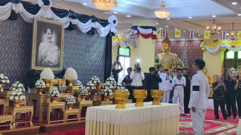 ชลบุรี อำเภอสัตหีบ จัดพิธีถวายน้ำสรงพระบรมศพหน้าพระฉายาลักษณ์ สมเด็จพระนางเจ้าสิริกิติ์ พระบรมราชินีนาถ พระบรมราชชนนีพันปีหลวง