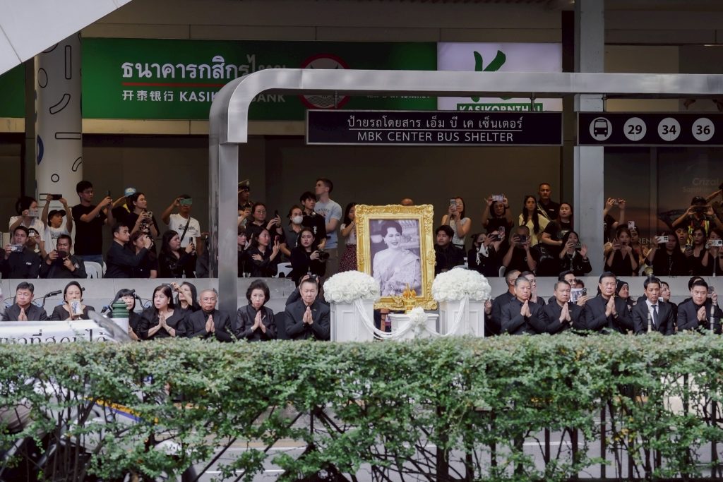นายสุเวทย์ ธีรวชิรกุล คณะกรรมการและรองประธานกรรมการบริหาร พร้อมด้วย นายวิจักษณ์ ประดิษฐวณิช ประธานเจ้าหน้าที่บริหารและกรรมการผู้อำนวยการ รวมถึงผู้บริหาร พนักงาน บริษัท เอ็ม บี เค จำกัด (มหาชน) และกลุ่มธุรกิจในเครือ ผู้ประกอบการร้านค้า และประชาชน ร่วมเฝ้าทูลละอองธุลีพระบาทรับเสด็จ พระบาทสมเด็จพระเจ้าอยู่หัว สมเด็จพระนางเจ้าฯ พระบรมราชินี และพระบรมวงศานุวงศ์ ในโอกาสเสด็จพระราชดำเนินไปในการอัญเชิญพระบรมศพ สมเด็จพระนางเจ้าสิริกิติ์ พระบรมราชินีนาถ พระบรมราชชนนีพันปีหลวง จากโรงพยาบาลจุฬาลงกรณ์ สภากาชาดไทย ผ่านด้านหน้าถนนพญาไท ไปยังพระบรมมหาราชวัง ณ ลานด้านหน้าศูนย์การค้าเอ็ม บี เค เซ็นเตอร์ เมื่อวันอาทิตย์ที่ 26 ตุลาคม 2568