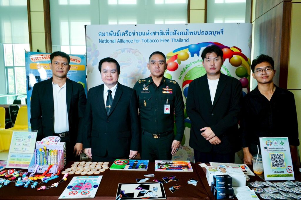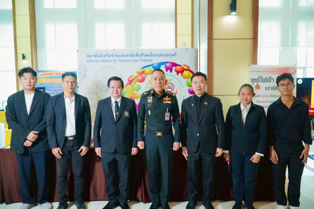 สมาพันธ์เครือข่ายแห่งชาติเพื่อสังคมไทยปลอดบุหรี่ แพทย์สมาคมแห่งประเทศไทยในพระบรมราชูปถัมภ์ นำโดย นางสาวปวริศา ครองยุทธ์ เจ้าหน้าที่ประสานงานสมาพันธ์ฯ , มูลนิธิครอบครัวพอเพียง นำโดย นางอริยสิริ พิพัฒน์นรา เลขาธิการมูลนิธิฯ , รร. ไทยรัฐวิทยา73(วัดบ้านพร้าว) จ. นครนายก นำโดย นายอาณัติ แซ่โค้ว ผอ.รร. นำคณะครูและนักเรียนเข้าร่วมในพิธี โดยมี นายชัชวาล เผ่าสวัสดิ์ ประธานคณะอนุกรรมการฝ่ายสื่อสารองค์กร มูลนิธิครอบครัวพอเพียง และประธานชมรมเยาวชนรุ่นใหม่ไม่ใส่ใจบุหรี่ ภายใต้สมาพันธ์เครือข่ายแห่งชาติเพื่อสังคมไทยปลอดบุหรี่ นำรายการเลิกบุหรี่ดีต่อใจปีที่8 ทาง ททบ.5 เข้าบันทึกเทปโทรทัศน์
