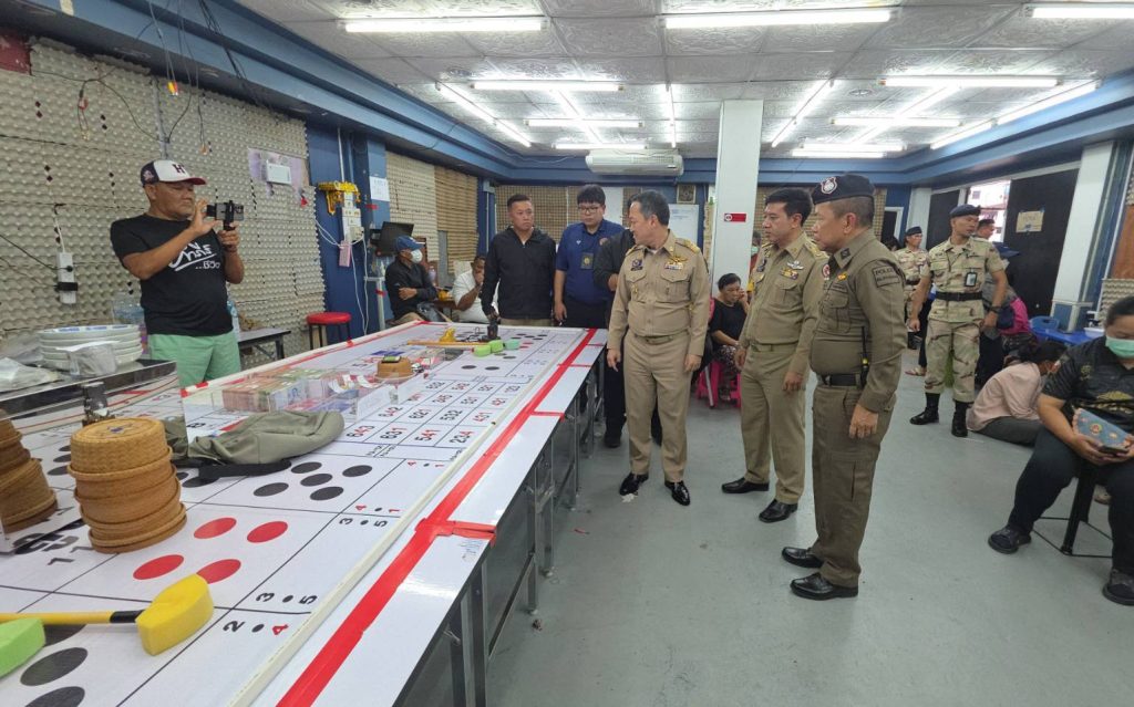 ฝ่ายปกครอง-ตร.บุกทลายบ่อนวิ่งรวบนักพนันไฮโลชายหญิงเกือบร้อย เงินนับแสน ย่านอ้อมน้อยสมุทรสาคร