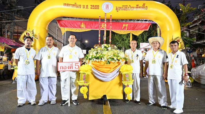 วานนี้ (วันจันทร์ที่ 27 ตุลาคม พ.ศ 2568 เวลา 18.00 น.) มูลนิธิป่อเต็กตึ๊ง นำโดย นายสัก กอแสงเรือง รองประธานกรรมการ เป็นประธานในพิธี พร้อมด้วย นายวิชิต ชินวงศ์วรกุล รองประธานกรรมการ นายสุรพงษ์ เตชะหรูวิจิตร กรรมการและรองเลขาธิการ คณะกรรมการ ผู้ช่วยกรรมการ และผู้บริหารมูลนิธิฯ ร่วมในพิธี “เวียนธูปศักดิ์สิทธิ์” เนื่องในเทศกาลกินเจ ประจำปี 2568 ตั้งจิตอธิษฐาน ขอพรจากเทพเจ้า เพื่อความเป็นสิริมงคล โดยเชื่อว่าเมื่อรับพรจากเทพเจ้าแล้ว จะทำให้จิตใจเบิกบาน ผ่องแผ้ว มีแต่ความสุขความเจริญรุ่งเรือง โดยมี เจ้าหน้าที่ และ อาสาสมัครมูลนิธิป่อเต็กตึ๊ง รวมทั้งศิษยานุศิษย์ และสาธุชน ร่วมพิธีกันอย่างเนืองแน่น ณ ศาลเจ้าไต้ฮงกง มูลนิธิป่อเต็กตึ๊ง พลับพลาไชย