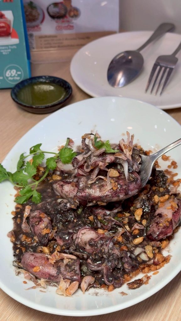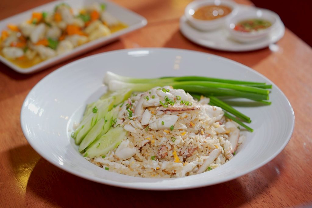 เริ่มจากเมนูจานแรก ข้าวผัดโคตรปู ที่ได้เนื้อปู หวานฉ่ำ จุใจ ที่ตักรับประทานคำไหนก็เจอเนื้อปูเน้น ๆ พร้อมหอมกลิ่นกระทะคั่ว แถมข้าวยังเป็นเม็ดสวย ไม่แฉะ ราคาจานเล็ก สำหรับ 1 ท่าน ราคา 139 บาท จานใหญ่ ทานได้ 2 -3 ท่าน ราคา 365 บาท ต่อด้วยเมนูที่สอง ไข่เจียวปูก้อนอู้ฟู่ อัดแน่นด้วยปูก้อนจุก ๆ ที่ขึ้นชื่อว่าต้องลองชิมสักครั้ง เพียง 650 บาทเท่านั้น ส่วนเมนูที่สามที่อยากแนะนำปูก้อนผัดพริกเหลือง เมนูไฮไลท์เนื้อปูก้อนที่หวานฉ่ำ อร่อยลงตัว ในราคาเพียง 369 บาท หรือเมนูอื่น ๆ ที่ไม่ใช่ปู ที่นี่ก็การันตีความสดใหม่ให้มาเต็มจานเช่นกัน อย่างจากที่สี่ หมึกน้ำดำผัดกระเทียม เมนูที่กำลังมาแรง รสชาติหวาน ๆ เค็ม ๆ กลมกล่อม ที่สั่งกันทุกโต๊ะกับราคาแค่ 329 บาท เท่านั้น ปิดท้ายกับเมนูที่ห้า ทอดมันปลาอินทรีย์ เนื้อปลาพรีเมี่ยม 100% ราคา 159 บาท