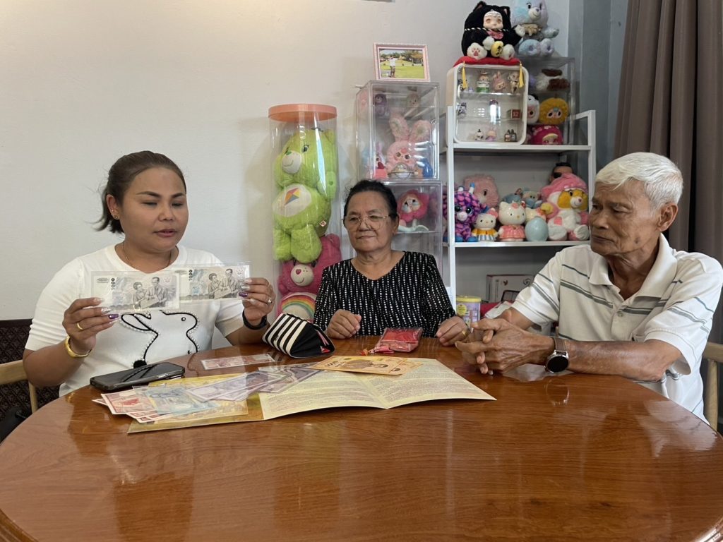ธนบัตรฉบับละ 500 บาท ชนิดที่ด้านหน้า เป็นรูปในหลวงรัชกาลที่ 9 ส่วนด้านหลังเป็นรูปพระพันปีหลวงร่วม 30 ฉบับ เป็นของสะสมของ นางธิดารัตน์ มีศรี อายุ 47 ปี ชาวเมืองสุราษฎร์ธานี ถูกเก็บไว้เป็นอย่างดีไม่ถูกนำไปใช้ในชีวิตประจำวัน โดยใบแรกถูกเก็บมานานแล้วกว่า 13 ปี ในกระเป๋าเงินเป็นเงินขวัญถุงตามความเชื่อของคนไทย