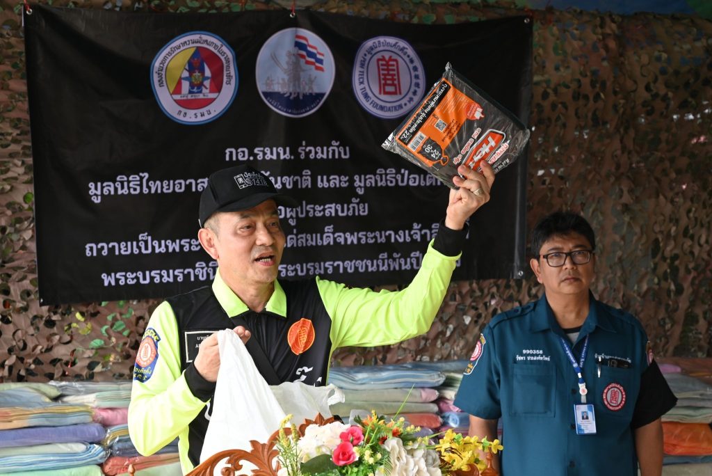วันนี้ (วันที่ 30 ตุลาคม พ.ศ. 2568) มูลนิธิป่อเต็กตึ๊ง นำโดย นายวิชิต ชินวงศ์วรกุล รองประธานกรรมการ พร้อมด้วย นายอรัณย์ โตทวด ผู้จัดการใหญ่มูลนิธิฯ ร่วมกับ กองอำนวยการรักษาความมั่นคงภายในราชอาณาจักร (กอ.รมน.) และคณะมูลนิธิไทยอาสาป้องกันชาติ จัดทีมบรรเทาสาธารณภัย ฝ่ายปฏิบัติการ พร้อมรถและเรือท้องแบน นำข้าวสาร พร้อม ชุดยังชีพฉุกเฉิน และชุดยาสามัญประจำบ้าน รวม 400 ชุด รวมมูลค่าทั้งสิ้น 360,800 บาท (สามแสนหกหมื่นแปดร้อยบาทถ้วน) มอบให้กับผู้ประสบอุทกภัยในพื้นที่อำเภอป่าโมก และอำเภอวิเศษชัยชาญ จังหวัดอ่างทอง เพื่อถวายเป็นพระราชกุศลแด่สมเด็จพระนางเจ้าสิริกิติ์ พระบรมราชินีนาถ พระบรมราชชนนีพันปีหลวง โดยมี พลโท ธนาธิป สว่างแสง ผู้อำนวยการสำนักกิจการมวลชนและสารนิเทศ กองอำนวยการรักษาความมั่นคงภายในราชอาณาจักร (ผอ.สมท.กอ.รมน.) พร้อมคณะ รวมทั้ง นายวรพจน์ จรัสเศรษฐสิริ ผู้ช่วยผู้จัดการฝ่ายปฏิบัติการ พร้อมด้วย นายยุทธนา ทาโคตร์ ผู้ช่วยหัวหน้าแผนกบรรเทาสาธารณภัยฯ ร่วมลงพื้นที่แจกจ่าย ณ ตำบลบางจัก อำเภอวิเศษชัยชาญ และตำบลโผงเผง อำเภอป่าโมก จังหวัดอ่างทอง