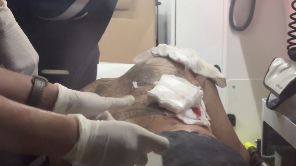 ภายในอู่ พบผู้บาดเจ็บเป็นชาย 1 ราย ทราบชื่อคือ นายธนนท์ ก่องกานดา อายุ 43 ปี ถูกยิงบริเวณแผ่นหลัง 2 นัด นอนบาดเจ็บอยู่ภายในร้าน เจ้าหน้าที่อาสาสมัคร ให้การปฐมพยาบาลเบื้องต้น ก่อนประสานทีมแพทย์ฉุกเฉินจากโรงพยาบาลราชธานี เข้าให้การช่วยเหลือนำส่งโรงพยาบาลพระนครศรีอยุธยา อย่างเร่งด่วน