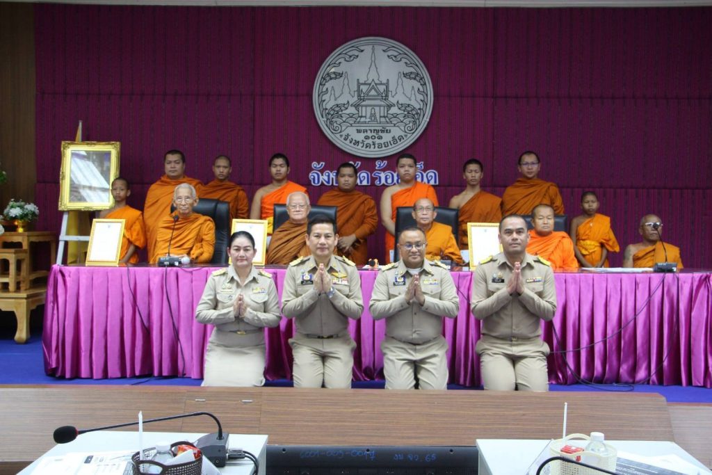 ก่อนการประชุม มีพิธีมอบเครื่องหมาย “รักษาดินแดนยิ่งชีพ” แก่ข้าราชการระดับอำนวยการระดับสูง พิธีถวายประกาศจังหวัดร้อยเอ็ด เรื่องแนวทางการตรวจสอบประวัติผู้ขอบรรพชาอุปสมบท มอบทุนการศึกษาสามเณรในโรงเรียนพระปริยัติธรรม และมอบรางวัลเกียรติคุณในหลายสาขา เช่น ปราชญ์เกษตรของแผ่นดิน การประกวดสาวไหมพันธุ์ไทย การดำเนินงาน TO BE NUMBER ONE โครงการสวนพฤกษศาสตร์โรงเรียน รวมถึงรางวัลสถานประกอบการต้นแบบดีเด่นด้านความปลอดภัยและสิ่งแวดล้อม
