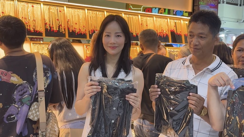 นาวสาว พรรณรภีร์ เจ้าของร้านทอง กล่าวว่า ตนเองและครอบครัวนำนึกในพระมหากรุณาธิคุณอันหาที่สุดมิได้ ของ สมเด็จพระนางเจ้าสิริกิติ์ พระบรมราชินีนาถ พระบรมราชชนนีพันปีหลวง เราประกอบธุรกิจอยากตอบแทนสังคม และอยากเป็นส่วนหนึ่งในการถวายความอาลัยสมเด็จพระพันปีหลวง จึงได้ทำเสื้อโปโลอย่างดี จำนวน 300 ตัว และริบบิ้นจำนวน 993 ชิ้น เพื่อมอบให้กับประชาชนที่เดนทางมาซื้อสินค้า รวมถึงพนักงานของร้านค้า และลูกค้าของทางร้าน เพื่อได้ใช้สวมใส่ และติดริบบิ้น ไวทุกข์ถวายความอาลัย พระพันปีหลวง ถือว่าเป็นการแบ่งเบาภาระของหลายๆคนที่ต้องสวมใส่เสื้อสีดำไว้ทุกข์ในช่วงเวลานี้ เสื้อเรามีจำนวนจำกัดมอบให้กับทุกคน ในช่วงวันที่ 1 – 3 พฤศจิกายน นี้ จนกว่าเสื้อ และริบบิ้นจะหมด
