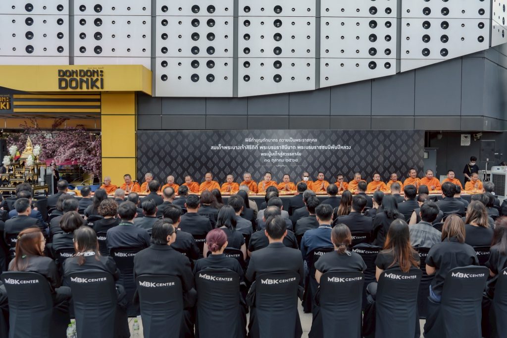 พระบรมราชินีนาถ พระบรมราชชนนีพันปีหลวง พระผู้เสด็จสู่สวรรคาลัย ด้วยการตักบาตรข้าวสาร อาหารแห้ง แด่พระสงฆ์ จำนวน ๒๐ รูป พร้อมถวายความอาลัยด้วยการยืนสงบนิ่งเป็นเวลา ๙๓ วินาที โดยพร้อมเพรียงกัน ด้วยความจงรักภักดีและน้อมสำนึกในพระมหากรุณาธิคุณอันล้นพ้นหาที่สุดมิได้ ณ ลานสกายวอล์ค ศูนย์การค้าเอ็ม บี เค เซ็นเตอร์