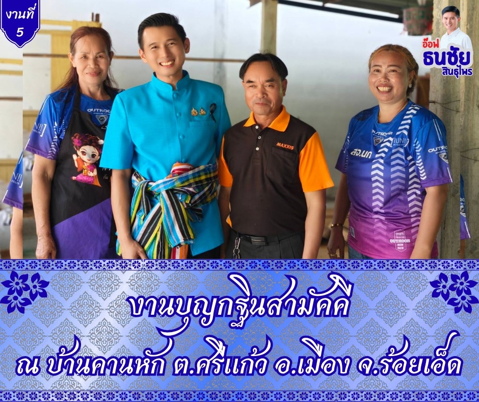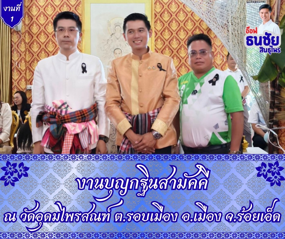 วันที่ 1 พฤศจิกายน 2568 อ๊อฟ ธนชัย สินธุไพร (อดีตที่ปรึกษารัฐมนตรีประจำสำนักนายกรัฐมนตรี) “ครอบครัวสินธุไพร” ได้รับเกียรติเรียนเชิญไปร่วมงาน งานบุญกฐินสามัคคีและอุปสมบท ในเขต อ.เมืองร้อยเอ็ด จ.ร้อยเอ็ด