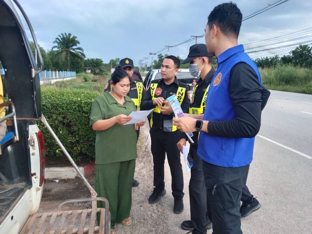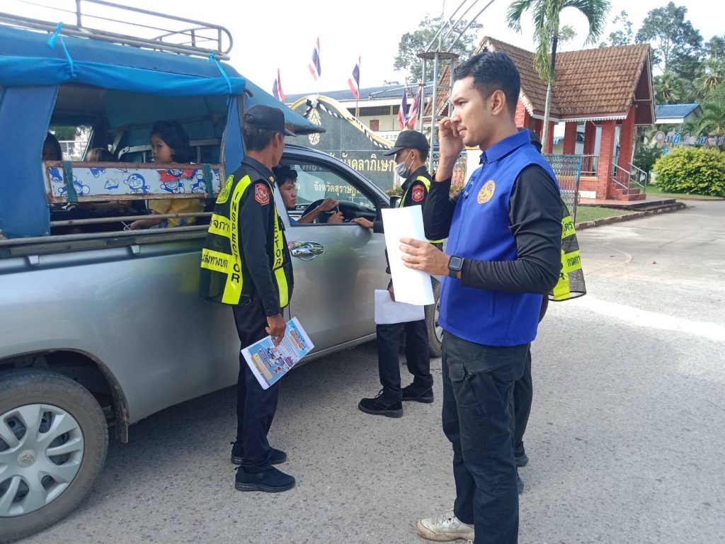 ปลัดอำเภอพร้อมด้วยเจ้าหน้าที่ตำรวจ สภ.เสวียด,สำนักงานขนส่งจังหวัดสุราษฎร์ธานี สาขาอำเภอไชยา,สมาชิกองอาสารักษาดินแดนอำเภอท่าฉางลงพื้นที่ตรวจสอบพร้อมทั้งประชาสัมพันธ์ให้แก่กลุ่มบุคคล นำรถยนต์ส่วนบุคคลมากระทำการเพื่อสินจ้าง รับส่งนักเรียนในเขตพื้นที่อำเภอท่าฉาง