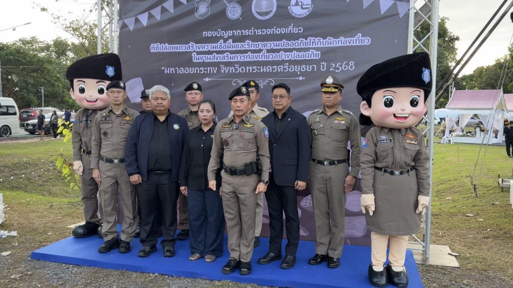 เมื่อเวลา 18.00 น.วันที่ 4 พฤศจิกายน 2568 ที่บริเวณโบราณสถาน วัดพระราม อุทยานประวัติศาสตร์นครศรีอยุธยา อำเภอพระนครศรีอยุธยา จังหวัดพระนครศรีอยุธยา พล.ต.ต.พงษ์สยาม มีขันทอง รอง ผู้บัญชาการตำรวจท่องเที่ยว เป็นประธานในพิธีปล่อยแถว ระดมกำลังเจ้าหน้าที่ตำรวจท่องเที่ยวทั่วประเทศ เจ้าหน้าที่ตำรวจ สภ.พระนครศรีอยุธยา เจ้าหน้าที่ตำรวจตรวจคนเข้าเมือง เจ้าหน้าที่ตำรวจสอบสวนกลาง อาสาสมัครตำรวจท่องเที่ยว หน่วยช่วยเหลือสังคม เพื่อสร้างความเชื่อมั่นและดูแลความปลอดภัยให้นักท่องเที่ยวทั้งชาวไทยและชาวต่างชาติในช่วงเทศกาลลอยกระทง