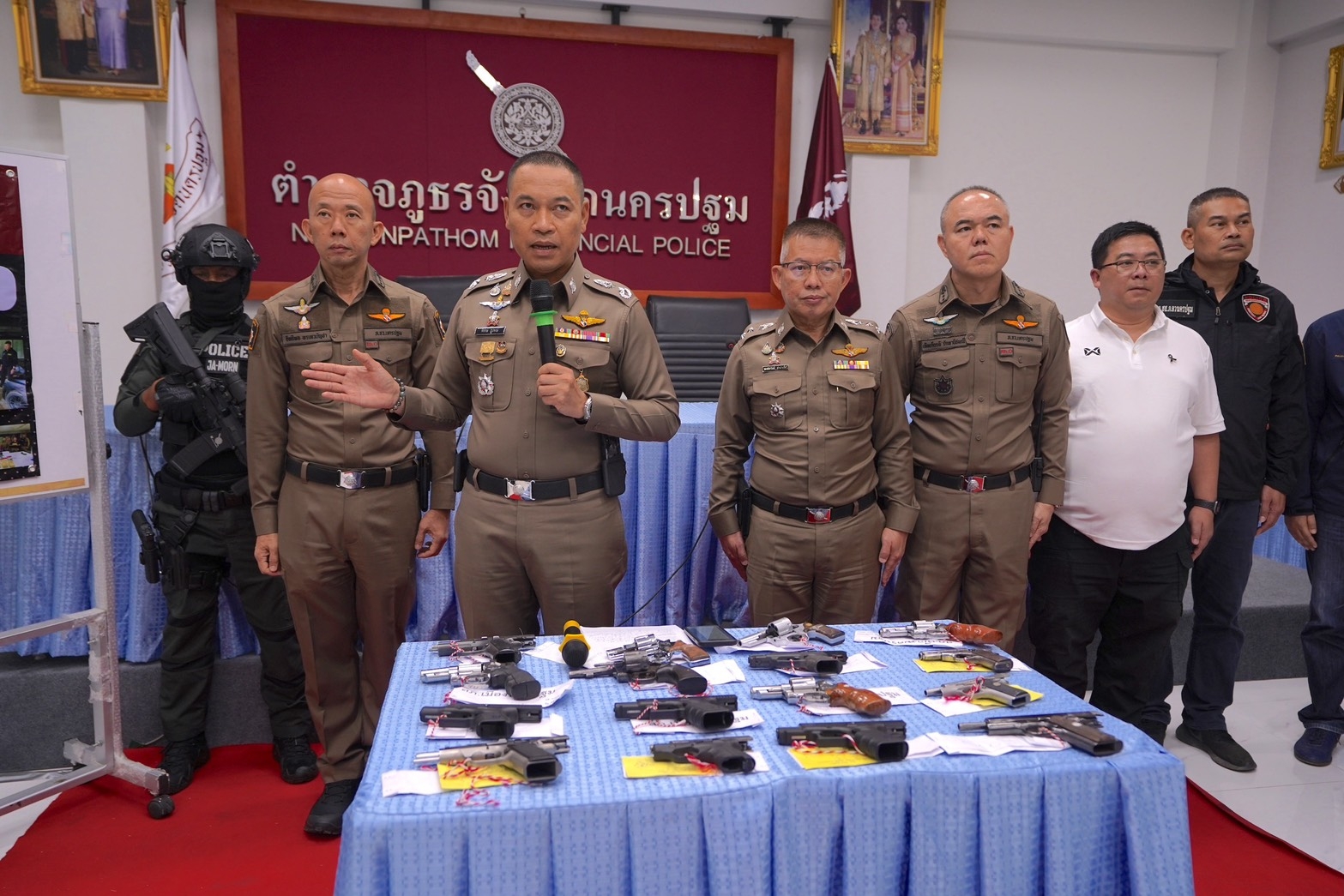 สืบเนื่องจากเมื่อวันที่ 27 พ.ค.68 เจ้าหน้าที่ตำรวจได้จับกุมนายเกียรติศักดิ์ หรือจิ๊บ อารมณ์ชื่น พร้อมของกลาง ยาบ้าจำนวน 1,820,000 เม็ด พร้อมอาวุธปืนจำนวนหนึ่ง เหตุเกิดที่ บ้านเช่าเลขที่ 177 ม.5 ต.ทุ่งกระพังโหม อ.กำแพงแสน จ.นครปฐม โดยได้ดำเนินคดีข้อหาจำหน่ายยาเสพติดให้โทษ ยาบ้า โดยการมีไว้ในความครอบครองโดยผิดกฎหมาย และมีอาวุธปืนและเครื่องกระสุนปืนไว้ในความครอบครองโดยไม่ได้รับอนุญาต จากนั้นทำการสืบสวนขยายผลจนสามารถออกหมายจับผู้ร่วมขบวนการคือนายวรวุฒิ หรือวุฒิ สระกบแก้ว อายุ 38 ปี.และต่อมาสืบทราบว่านายวรวุฒิ หรือวุฒิ สระกบแก้ว ผู้ต้องหาตามหมายจับได้หลบหนีมาอยู่ที่บ้านเลขที่ 49 ม.6 ต.ทุ่งกระพังโหม อ.กำแพงแสน จ.นครปฐม จึงได้ขอศาลออกหมายค้นที่บ้านเลขที่ดังกล่าว โดยวันนี้เจ้าหน้าที่ตำรวจชุดจับกุมได้นำหมายค้นของศาลจังหวัดนครปฐมที่ 598/2568 ลงวันที่ 4 พฤศจิกายน 2568 ทำการตรวจค้นบ้านและบริเวณบ้านเลขที่49 ม.6 ต.ทุ่งกระพังโหม อ.กำแพงแสน จ.นครปฐม ผลการตรวจค้นพบ.นายวรวุฒิ หรือวุฒิฯ ผู้ต้องหาตามหมายจับ พร้อมอาวุธปืนขนาด 9 มม. จำนวน 1 กระบอก จึงได้จับกุมตัวพร้อมของกลาง ส่ง พงส.สภ.กำแพงแสนดำเนินคดีตามกฎหมายต่อไป พล.ต.ต.พิทักษ์ อุปพงษ์ ผบก.ภ.จว.นครปฐม กล่าวว่า การจับกุมยาบ้าดังกล่าวที่มีจำนวนมาก โดยเป็นการใช้ไหวพริบในการตรวจสอบและติดตามขยายผลจาก เจ้าหน้าที่สายตรวจทำให้สามารถติดตามขยายผลได้ยาบ้าดังกล่าว ถือว่ามีไหวพริบทักษะของเจ้าหน้าที่ ซึ่งจากนี้จะมีการปรับแผนการทำงานทำให้จังหวัดนครปฐม เป็นเมืองที่ปลอดภัย ทั้งในเรื่องของอาวุธปืน ยาเสพติดและความรุนแรง พี่น้องในจังหวัดนครปฐมต้องมีอุ่นใจในการใช้ชีวิต นักเลง พ่อค้ายาต้องหมดไป ซึ่งเราจะยาแรงใส่กับกลุ่มคนพวกนี้