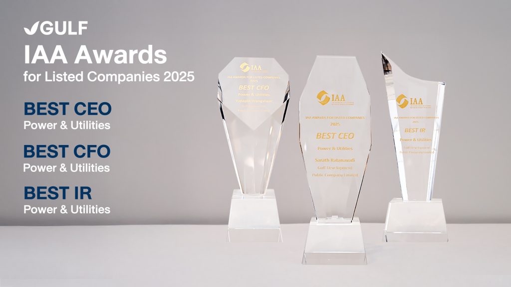 บริษัท กัลฟ์ ดีเวลลอปเมนท์ จำกัด (มหาชน) (GULF) คว้า 3 รางวัลยอดเยี่ยมในกลุ่มผลิตไฟฟ้าและสาธารณูปโภค จากเวที IAA Awards for Listed Companies 2025 ประกอบด้วย รางวัล BEST CEO ที่มอบให้นายสารัชถ์ รัตนาวะดี ประธานเจ้าหน้าที่บริหาร รางวัล BEST CFO ให้แก่นางสาวยุพาพิน วังวิวัฒน์ ประธานเจ้าหน้าที่บริหารด้านการเงิน รวมถึงรางวัล BEST IR มอบแก่บริษัทในฐานะองค์กรนักลงทุนสัมพันธ์ยอดเยี่ยม สะท้อนศักยภาพผู้บริหารในตลาดทุนที่มีศักยภาพโดดเด่น ความเป็นเลิศในการบริหารงาน และสะท้อนมาตรฐานความเป็นเลิศในการให้ข้อมูลทางการเงินที่ถูกต้อง ครบถ้วน และทันท่วงที เพื่อให้นักลงทุนเห็นศักยภาพการเติบโตขององค์กรที่ขับเคลื่อนควบคู่ไปกับกลยุทธ์ด้านความยั่งยืน ซึ่งนับว่าเป็นส่วนสำคัญอย่างยิ่งต่อการเติบโตของเศรษฐกิจตลาดทุน และประเทศไทย
