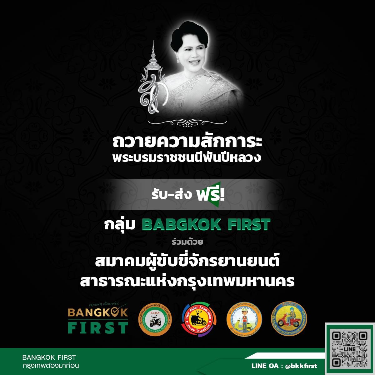 กลุ่มแบงคอกเฟิร์ส ร่วมกับ สมาคมวินจักรยานยนต์ ขอเป็นส่วนหนึ่งในการอำนวยความสะดวกแก่พี่น้องประชาชนที่ตั้งใจเดินทางไปถวายสักการะ พระบรมราชชนนีพันปีหลวง ณ พระบรมมหาราชวังและท้องสนามหลวง