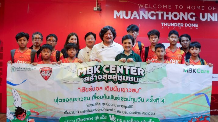 นางสาวศตกมล วรกุล ผู้อำนวยการอาวุโสฝ่ายสื่อสารองค์กร บริษัท อินเทลลิเจ้นท์ ครีเอทีฟ แอนด์ มาร์เก็ตติ้ง จำกัด กล่าวว่า “เอ็ม บี เค เซ็นเตอร์ ให้ความสำคัญกับการส่งเสริมศักยภาพของเยาวชน และการพัฒนาคุณภาพชีวิตของชุมชนอย่างยั่งยืน พร้อมเดินหน้าสร้างสรรค์กิจกรรมดี ๆ อย่างต่อเนื่อง ผ่านโครงการ MBK Care สร้างสุขสู่ชุมชน และสำหรับการมาชมฟุตบอลในครั้งนี้ เราต่อยอดจากความสำเร็จของการแข่งขัน ฟุตซอลเยาวชนเชื่อมสัมพันธ์ เขตปทุมวัน ครั้งที่ 4 ด้วยกิจกรรม ‘เชียร์บอล เติมฝันเยาวชน’ โดยพาน้อง ๆ ทีมที่ได้แชมป์ มาชมการแข่งขันฟุตบอลไทยลีก พร้อมสัมผัสบรรยากาศจริง และใกล้ชิดนักเตะระดับอาชีพ โดยเราได้รับความร่วมมืออย่างดีจาก สโมสรเมืองทอง ยูไนเต็ด ที่ร่วมสนับสนุนและเติมเต็มความฝันของน้อง ๆ ทีมฟุตซอลเยาวชน ศูนย์นันทนาการลุมพินี