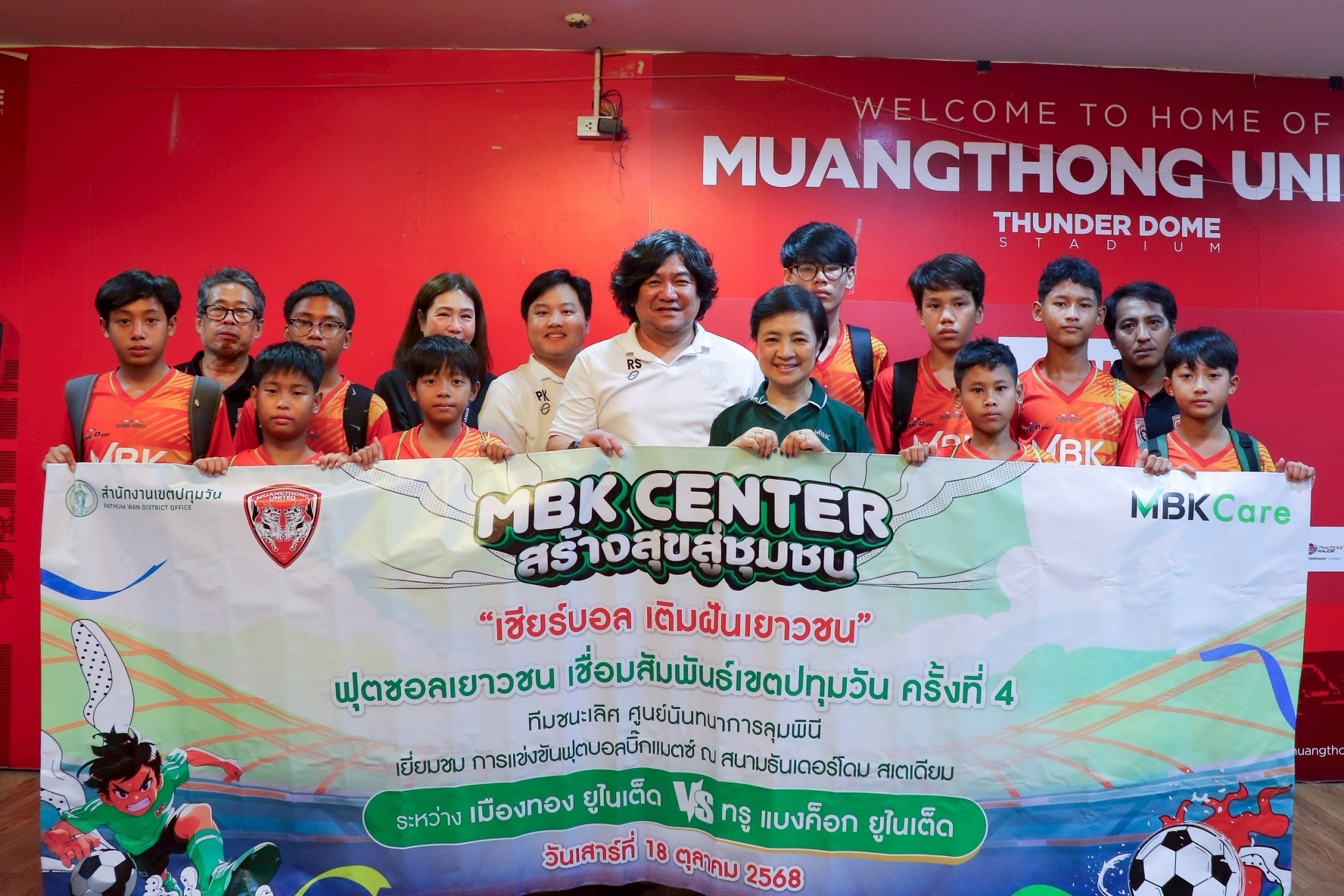 นางสาวศตกมล วรกุล ผู้อำนวยการอาวุโสฝ่ายสื่อสารองค์กร บริษัท อินเทลลิเจ้นท์ ครีเอทีฟ แอนด์ มาร์เก็ตติ้ง จำกัด กล่าวว่า “เอ็ม บี เค เซ็นเตอร์ ให้ความสำคัญกับการส่งเสริมศักยภาพของเยาวชน และการพัฒนาคุณภาพชีวิตของชุมชนอย่างยั่งยืน พร้อมเดินหน้าสร้างสรรค์กิจกรรมดี ๆ อย่างต่อเนื่อง ผ่านโครงการ MBK Care สร้างสุขสู่ชุมชน และสำหรับการมาชมฟุตบอลในครั้งนี้ เราต่อยอดจากความสำเร็จของการแข่งขัน ฟุตซอลเยาวชนเชื่อมสัมพันธ์ เขตปทุมวัน ครั้งที่ 4 ด้วยกิจกรรม ‘เชียร์บอล เติมฝันเยาวชน’ โดยพาน้อง ๆ ทีมที่ได้แชมป์ มาชมการแข่งขันฟุตบอลไทยลีก พร้อมสัมผัสบรรยากาศจริง และใกล้ชิดนักเตะระดับอาชีพ โดยเราได้รับความร่วมมืออย่างดีจาก สโมสรเมืองทอง ยูไนเต็ด ที่ร่วมสนับสนุนและเติมเต็มความฝันของน้อง ๆ ทีมฟุตซอลเยาวชน ศูนย์นันทนาการลุมพินี