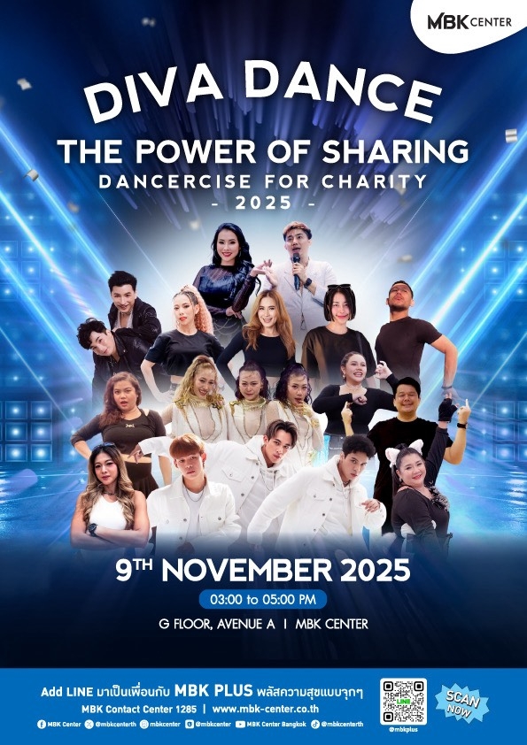 กลับมาอีกครั้งกับพลังแห่งการแบ่งปัน!! ศูนย์การค้า เอ็ม บี เค เซ็นเตอร์ ร่วมกับกลุ่มเต้นออกกำลังกายที่รวมพลังสร้างสรรค์เพื่อสังคมอย่างต่อเนื่อง The Diva Thailand ชวนรวมพลังแห่งการให้ ร่วมเต้นด้วยหัวใจ ส่งต่อรอยยิ้มให้สังคมและสุขภาพดีไปด้วยกันกับบทเพลงไทยในความทรงจำในกิจกรรม The Power of Sharing Dancercise for Charity 2025 กับครูสอนเต้นจากทั่วประเทศ พร้อมส่งต่อพลังแห่งความดีเพื่อช่วยเหลือ “น้องทิเบต” เด็กชายวัย 4 ขวบ จากมูลนิธิบ้านครูบุญชูเพื่อเด็กพิเศษ จังหวัดชลบุรี ที่ต้องการการรักษาอาการหนังตาผิดปกติ ซึ่งส่งผลต่อการใช้ชีวิตประจำวันและพัฒนาการในอนาคต ขอเชิญชวนทุกท่านมาร่วมส่งต่อแรงบันดาลใจแห่งการแบ่งปันและสัมผัสพลังแห่งการเต้นเพื่อมอบโอกาสในชีวิตครั้งใหม่ให้กับน้อง ๆ จากมูลนิธิบ้านครูบุญชูเพื่อเด็กพิเศษ ผ่านบทเพลงไทยในความทรงจำที่แสนอบอุ่นและคุ้นหู เพื่อสร้างความสุขให้สังคมไทยอย่างยั่งยืน ในวันอาทิตย์ที่ 9 พฤศจิกายน 2568 ตั้งแต่เวลา 15.00 น. – 17.00 น. ณ ลานกิจกรรมเอ็ม บี เค อเวนิว โซน A