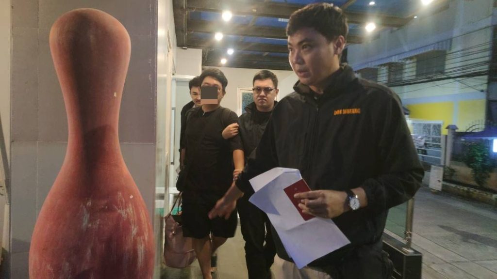 เมื่อเวลา 17.00 น. วันที่ 7 พ.ย. ภายใต้การอำนวยการของ พล.ต.ต.เกียรติกุล สนธิเณร ผบก.น.2 และ พ.ต.อ.ศักดิ์สิทธิ์ มีสวัสดิ์ รอง ผบก.บก.น.2 สั่งการให้พ.ต.อ.ภูวดล อุ่นโพธิ ผกก.สน.ดอนเมือง ประสานกำลังร่วมกับ พ.ต.อ.จุมพล สินศิริพงษ์ ผกก.สน.ทุ่งครุ โดย พ.ต.ท.อำนาจ ฉ่ำชะเอม รอง ผกก.สส.สน.ดอนเมือง พ.ต.ท.อนุพงษ์ อรุณคีรีโรจน์ รอง ผกก.สส.สน.ทุ่งครุ พ.ต.ต.ชยพัทธ์ หีบทอง สว.สส.สน.ดอนเมือง ร.ต.อ.โชคชัย พิณะเวศน์ รอง สว.สส.สน.ดอนเมือง ร.ต.อ.ฉัตรพงศ์ ภัทรสันติภูมิ ร.ต.ท.ธนายุส ด้วงสงค์ รอง สว.สส.สน.ทุ่งครุ เข้าจับกุมตัว นายแทน คา ยอง อายุ 26 ปี สัญชาติมาเลเซีย ผู้ต้องหาตามหมายจับศาลอาญาธนบุรี ที่ 1063/2568 ลงวันที่ 7 พฤศจิกายน 2568 ในฐานความผิด “ ร่วมกันฉ้อโกงโดยแสดงตนเป็นบุคคลอื่น ” พร้อมของกลางชุดที่สวมใส่ในวันก่อเหตุ กระเป๋าเป้สีดำ 1 ใบ มือถือ 2 เครื่อง ซองซิมการ์ด เอไอเอส ( ไม่มีซิม ) 1 ใบ ซิมการ์ดประเทศสิงคโปร์ ยังไม่ได้ใช้ จำนวน 4 ซิม บัตรซิมการ์ดเปล่า 1 ใบ บัตรเดบิตต่างประเทศ 3 ใบ โดยจับกุมได้ที่โรงแรมแห่งหนึ่งในซอยสรณคมณ์ 3 แขวงสีกัน เขตดอนเมือง กทม.