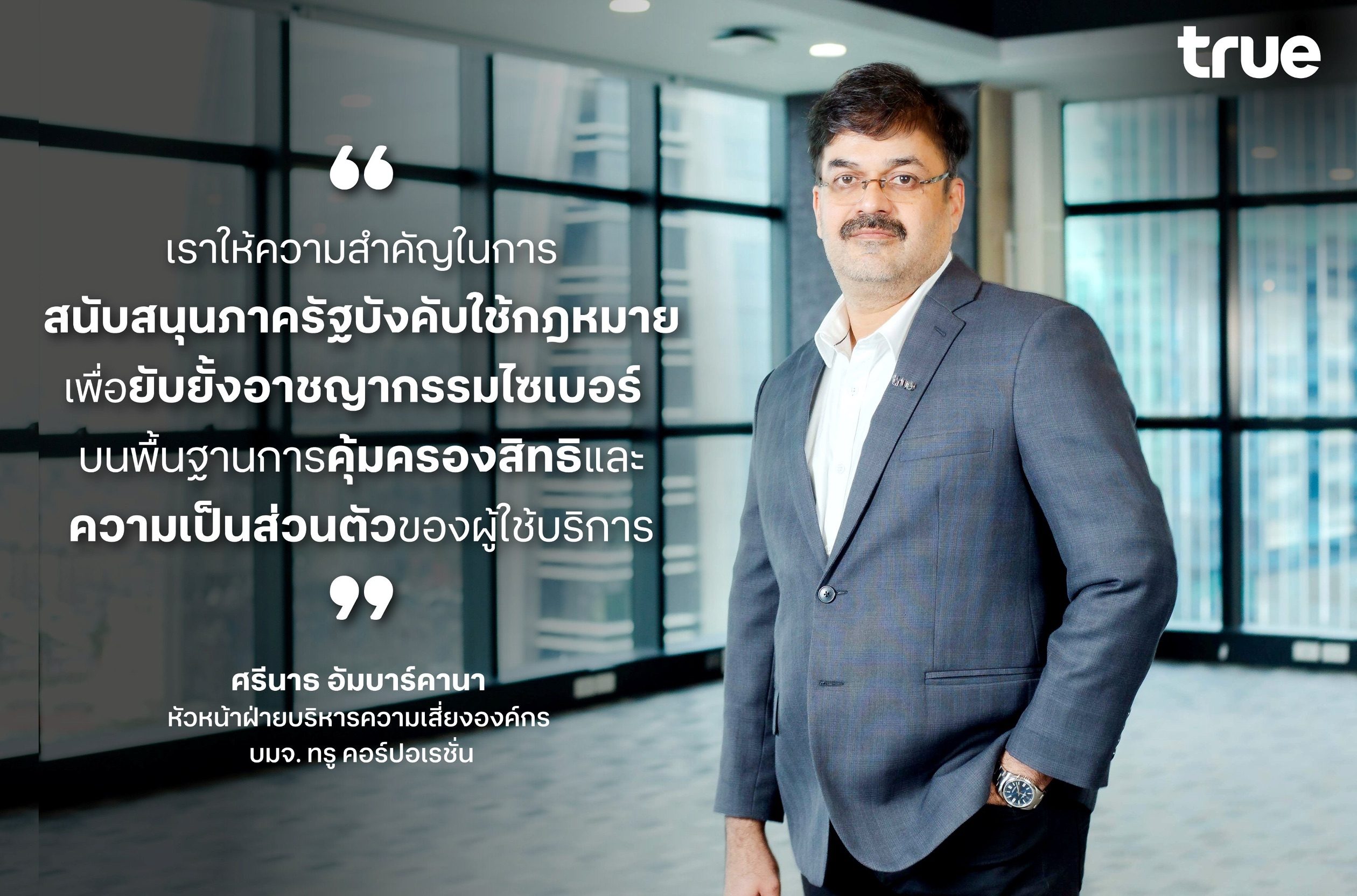 นายศรีนาธ อัมบาร์คานา หัวหน้าฝ่ายบริหารความเสี่ยงองค์กร บริษัท ทรู คอร์ปอเรชั่น จำกัด (มหาชน) กล่าวว่า “ความสำเร็จในการจับกุมเครือข่ายมิจฉาชีพที่ใช้เครื่อง SIMBOX ในจังหวัดสระแก้วและ นนทบุรีครั้งล่าสุดนี้ สะท้อนถึงความร่วมมืออันแข็งแกร่งระหว่างทรู หน่วยงานรัฐ และสำนักงาน กสทช. ที่มีเป้าหมายเดียวกันในการปกป้องประชาชนจากภัยคุกคามทางดิจิทัล โดยทรูให้ความสำคัญกับการสนับสนุนภาครัฐในการบังคับใช้กฎหมาย เพื่อยับยั้งการกระทำผิดในรูปแบบโทรหลอกลวงและอาชญากรรมไซเบอร์ โดยคำนึงถึงการคุ้มครองสิทธิและความเป็นส่วนตัวของผู้ใช้บริการเป็นสำคัญ นอกจากนี้ เรายังร่วมถ่ายทอดองค์ความรู้กับภาครัฐ จัดอบรมและแลกเปลี่ยนประสบการณ์กับเจ้าหน้าที่ตำรวจไซเบอร์ เพื่อเสริมทักษะด้านเทคโนโลยีและการบริหารจัดการความเสี่ยงในโลกดิจิทัล พร้อมมุ่งใช้ศักยภาพของเทคโนโลยีและบุคลากรของทรูในการสนับสนุนภาครัฐในทุกมิติ ทั้งด้านข้อมูล เทคโนโลยี และการพัฒนาระบบตรวจจับภัยไซเบอร์รูปแบบใหม่ เพื่อยกระดับมาตรฐานความปลอดภัยดิจิทัลของประเทศ และสร้างระบบนิเวศดิจิทัลที่ปลอดภัย เชื่อถือได้ และเป็นประโยชน์ต่อประชาชนและประเทศในระยะยาว”