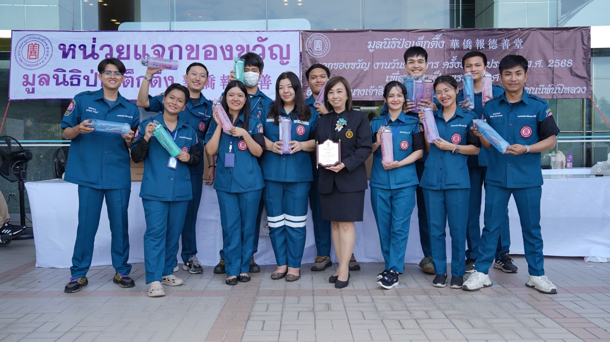 วันนี้ (วันเสาร์ที่ 8 พฤศจิกายน พ.ศ. 2568) มูลนิธิป่อเต็กตึ๊ง นำโดย นางศิริพร กระจ่างหล้า ผู้จัดการฝ่ายสังคมสงเคราะห์ และ นางสาวศุภรัตน์ สมบัติเจริญไทย หัวหน้าแผนกส่งเสริมการศึกษาและอาชีพ ร่วมกับสภาสังคมสงเคราะห์แห่งประเทศไทย ในพระบรมราชูปถัมภ์ นำทีมเจ้าหน้าที่ลงพื้นที่มอบกระบอกน้ำพลาสติก ขนาด 1 ลิตร รวมจำนวน 4,000 ใบ รวมงบประมาณเป็นเงิน 248,000 บาท (สองแสนสี่หมื่นแปดพันบาทถ้วน) เป็นของขวัญให้แก่ผู้พิการ เพื่อเป็นขวัญและกำลังใจ เนื่องในงานวันคนพิการ ครั้งที่ 56 ประจำปี 2568 เพื่อถวายเป็นพระราชกุศลแด่สมเด็จพระนางเจ้าสิริกิติ์ พระบรมราชินีนาถ พระบรมราชชนนีพันปีหลวง โดยมี ศาสตราจารย์เกียรติคุณ นายแพทย์เกษม วัฒนชัย องคมนตรี เป็นประธานในพิธี และมอบโล่เกียรติคุณแด่มูลนิธิป่อเต็กตึ๊ง โดย นางศิริพร กระจ่างหล้า ผู้จัดการฝ่ายสังคมสงเคราะห์ เป็นผู้รับมอบ ณ ห้องจัดเลี้ยงอาหาร 9 ชั้น 1 บริษัท โทรคมนาคมแห่งชาติ จำกัด สำนักงานแจ้งวัฒนะ กรุงเทพฯ