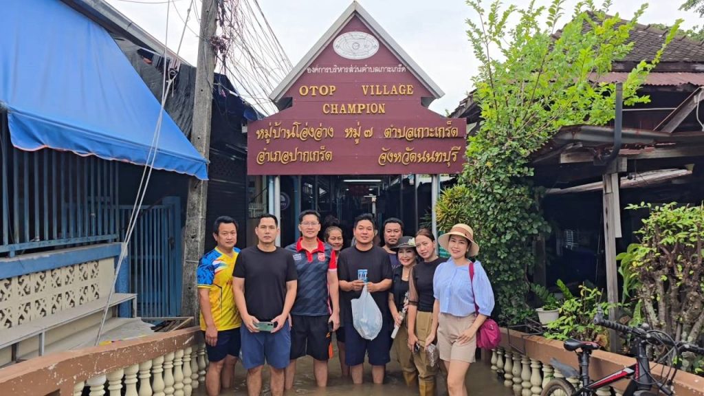 นนทบุรี “พลวัตร” กมธ.ทหาร วุฒิสภา ควง “เต้ พระราม 7” ลุยน้ำให้กำลังใจชาวเกาะเกร็ด มอบครีมแก้เชื้อรา น้ำกัดเท้า