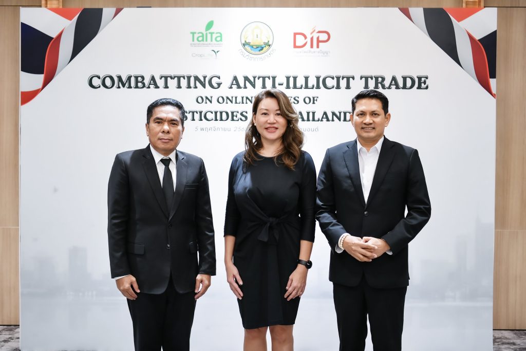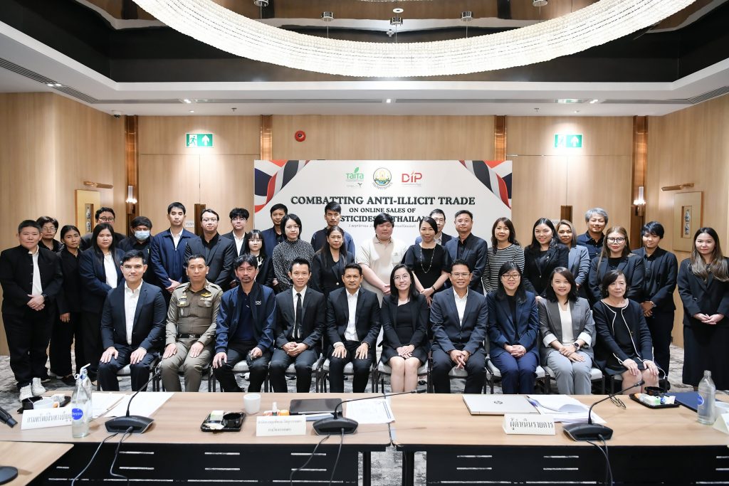 เมื่อเร็วๆนี้ กรมทรัพย์สินทางปัญญา กรมวิชาการเกษตร ร่วมกับสมาคมการค้านวัตกรรมเพื่อการเกษตรไทย (TAITA) จัดเวทีเสวนาและประชุมหารือ “Combatting Illicit Trade on Online Sales of Pesticides in Thailand” ณ โรงแรมแกรนด์ริชมอนด์ จังหวัดนนทบุรี เพื่อแลกเปลี่ยนข้อมูลและแนวทางความร่วมมือระหว่างหน่วยงานภาครัฐ ภาคเอกชน และแพลตฟอร์มออนไลน์ ในการป้องกันและปราบปรามการจำหน่ายสารกำจัดศัตรูพืชผิดกฎหมายทางออนไลน์
