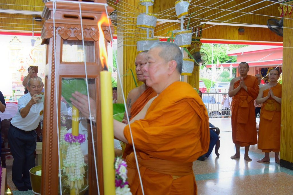 โดยมี สมเด็จพระมหารัชมงคลมุนี เจ้าคณะใหญ่หนกลาง วัดไตรมิตรวิทยารามวรวิหาร เป็นประธานจุดเทียนชัยมงคล และนั่งปรกอธิฐานจิตวัตถุมงคลพร้อมพระเกจิอาจารย์ชื่อดังนั่งปรกอธิษฐานจิต อาทิ พระราชสุทธิธรรมาจารย์ เจ้าคณะจังหวัดปทุมธานี, พระราชสิริวัชรรังษี, หลวงพ่ออ่าง วัดใหญ่สว่างอารมณ์ และพระครูโสภณภัทรเวทย์, ดร. (หลวงพ่ออ๊อด ปธานิโก) เจ้าอาวาสวัดสายไหม เจ้าคณะอำเภอลำลูกกา ถือว่าเป็นพิธีที่เข้มแข็งแห่งปี